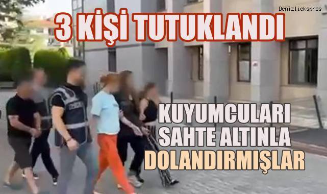 Denizli’nin Merkezefendi ilçesinde, kuyumculara sahte altın bileklik ve kolye satmaya çalışan üç dolandırıcı, son işlerinde yakayı ele verdi. Olay, Saraylar Mahallesi Bayramyeri Meydanı'nda bulunan kuyumcular çarşısında meydana geldi.