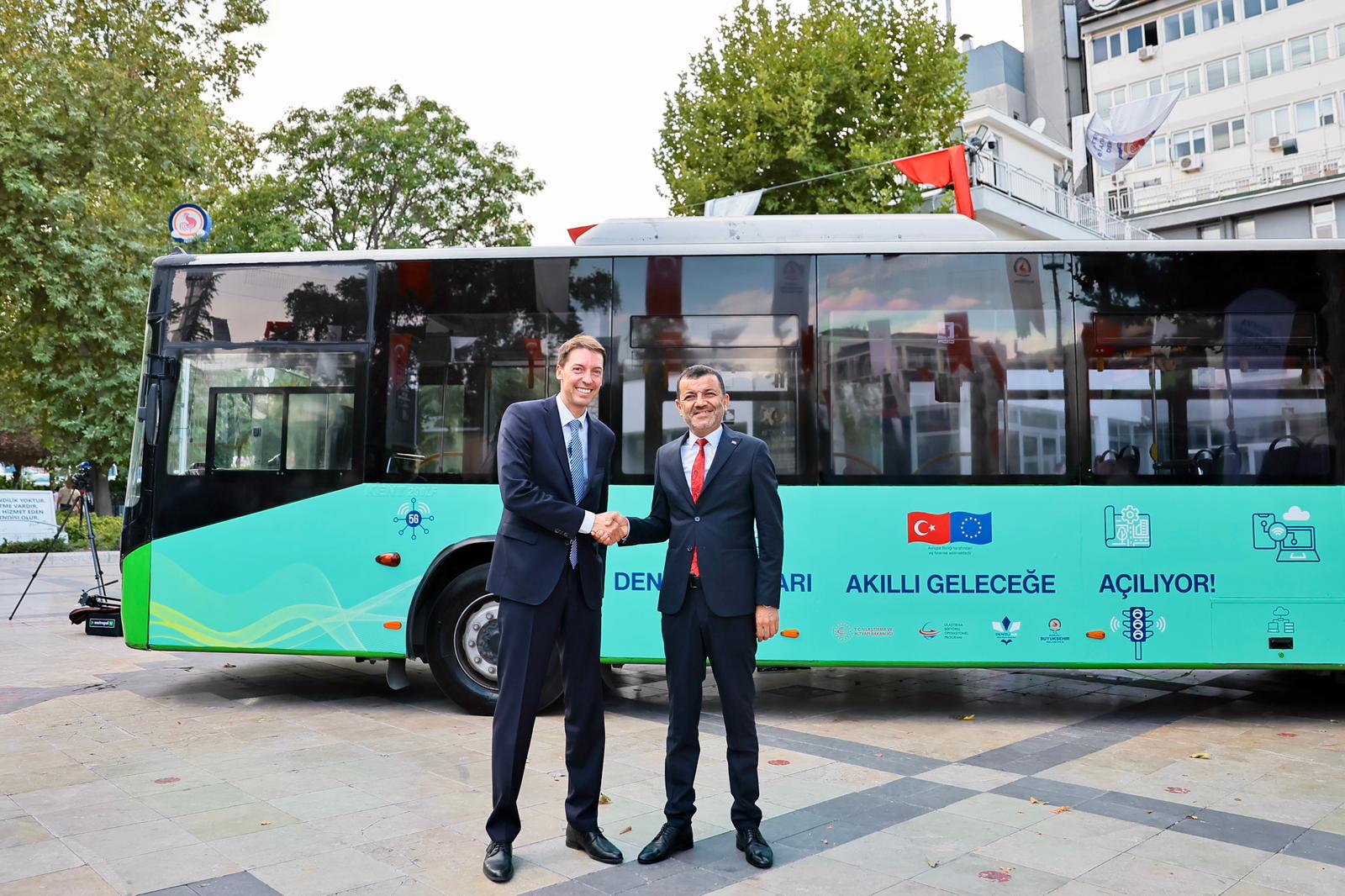 Avrupa Birliği Türkiye Delegasyonu Başkan Vekili Jurgis Vılcinskas ise Denizli’de olmaktan duyduğu memnuniyeti dile getirerek, “Denizli kendine özgü yapısıyla örnek bir şehir. Bu projeyle otobüslerde yolcu verileri ölçülerek sistemin daha verimli hale getirilmesi sağlanacak. Hedefimiz, bisiklet yolları, yürüyüş yolları ve otobüs hatlarını birbirine entegre eden, temiz ve erişilebilir bir ulaşım modeli oluşturmak. İnsanların şehir içinde daha fazla yürümelerini, aktif olmalarını teşvik etmek istiyoruz” diye konuştu.