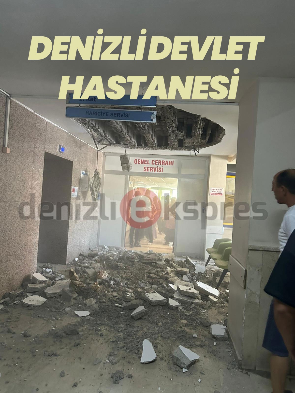 Depreme dayanıksız raporu bulunmasına rağmen hâlâ hizmet vermeye devam eden Denizli Devlet Hastanesi’nde, ameliyathane katında tavan çöktü, 2 kişi yaralandı. Tavanın çökmesi hastanede büyük bir paniğe neden oldu. Olay, hastanenin en kritik noktalarından biri olan genel cerrahi servisi, ameliyathanenin ve hastaların beklediği koltukların önünde yaşandı.