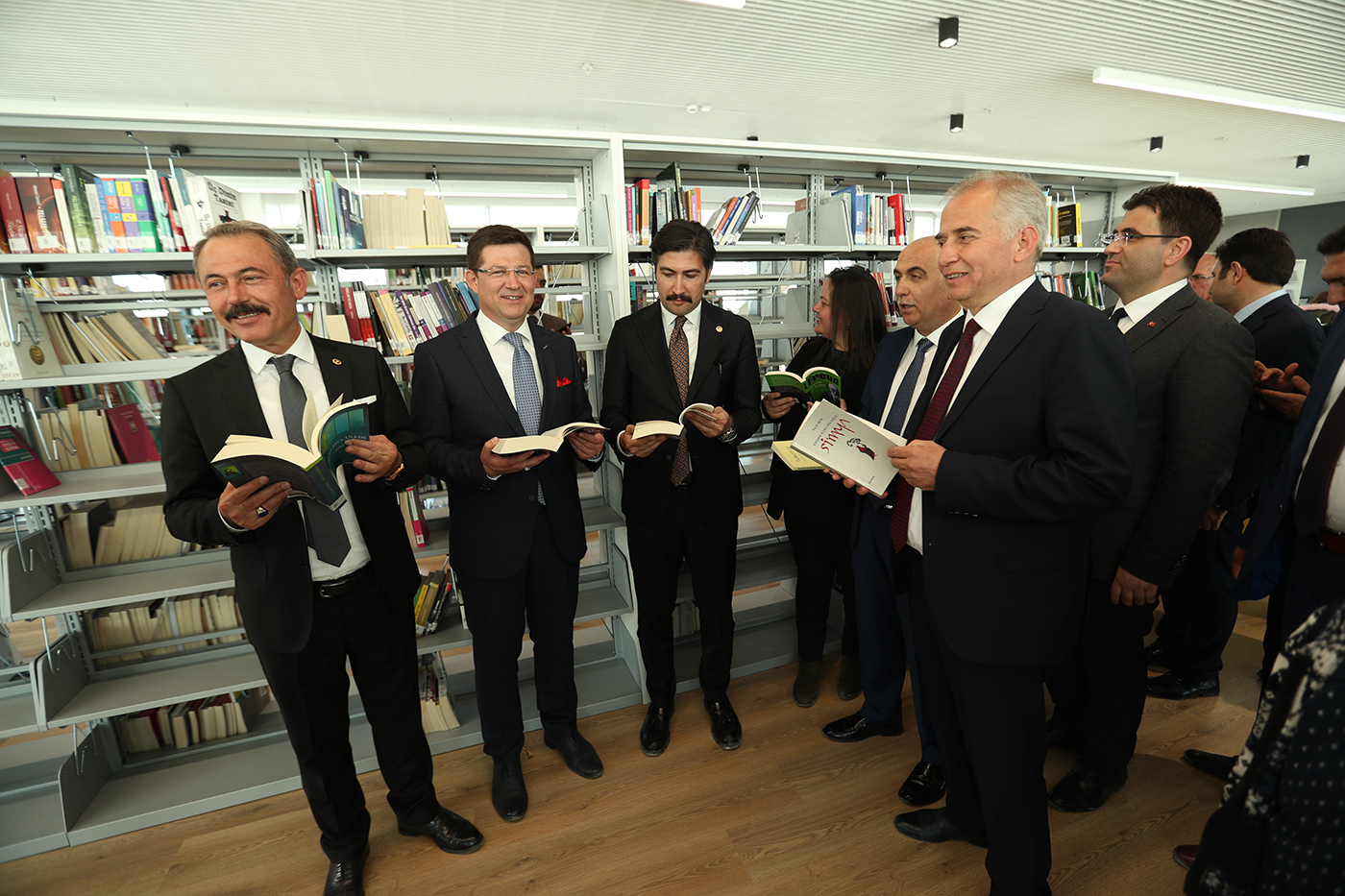 AK Parti Grup Başkan Vekili ve Denizli Milletvekili Cahit Özkan, “Bugün millet kütüphaneleriyle hikmeti kendi medeniyetinin temeli olarak gören bir medeniyetin mensubu olarak inşallah çok daha güçlü aydınlık yarınlara taşıyacağız. Merkez kütüphanemizin ülkemize, milletimize, Merkezefendimize hayırlı uğurlu olmasını niyaz ediyorum ”dedi.