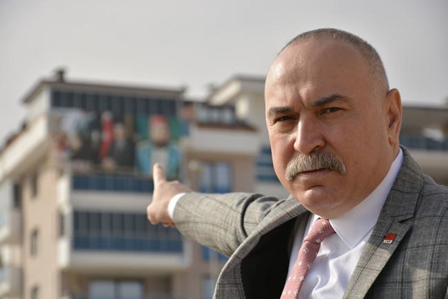 CHP Merkezefendi İlçe Başkanı Sedat Demirci, Servergazi Mahallesinde bir binaya asılan resimlere çok sert tepki gösterdi.