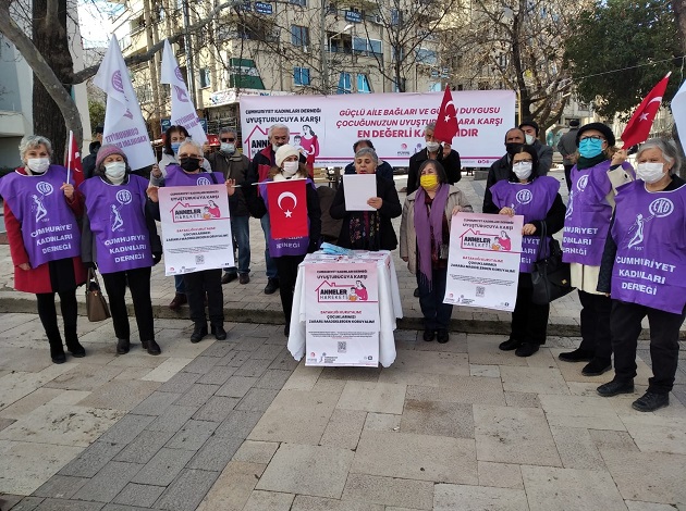 Türkiye çapında “Uyuşturucuya Karşı Anneler Hareketi” adıyla mücadele yürüten CKD Gazi İlkokulu yanında bir basın açıklaması yaptı. Açıklamayı Dernek adına YK üyesi Elif Çobanoğlu yaptı. Çobanoğlu, “Değerli Denizli halkı, Cumhuriyet Kadınları Derneği olarak Türkiye çapında başlattığımız uyuşturucuya karşı anneler hareketini sizlere duyurmak amacıyla toplanmış bulunuyoruz. Hepiniz hoş geldiniz. Gençlerimizi ve geleceğimizi tehdit eden uyuşturucu maddelerin kullanılmasını önlemede, ailelere, özellikle biz annelere büyük görevler düşüyor.
