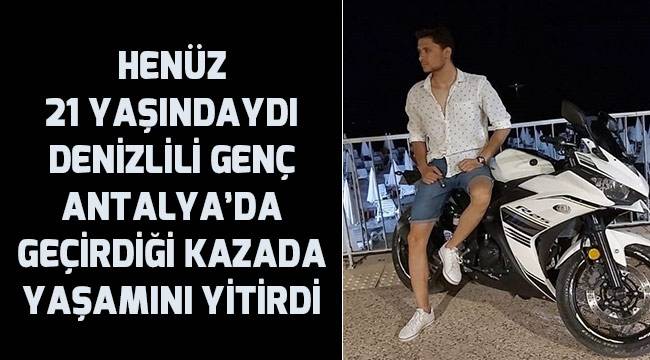 Denizlili üniversite öğrencisi henüz 21 yaşındaki genç Antalya'da geçirdiği trafik kazasında yaşamını yitirdi. Kazada hayatını kaybeden Denizlili gençten 19 gün önce aldığı hurdaya dönen motosikleti ile başucuna konulan kaskı kaldı.Kaza, Kepez ilçesine bağlı Karşıyaka Mahallesi 3938 sokak ile 3933 sokak kesişimindeki kontrolsüz kavşakta saat 17.30 sıralarında meydana geldi. Edinilen bilgiye göre, 07 ANH 603 plakalı motosiklet sürücüsü Ali Aydın (21), staj gördüğü işyerinden ayrılıp evine doğru gittiği sırada, İ.K. (51) yönetimindeki 07 MDM 97 plakalı servis minibüsüyle kontrolsüz kavşakta çarpıştı. Çarpmanın şiddetiyle motosiklet bir yana, sürücü genç ise farklı noktaya savruldu. Kazayı görenlerin haber vermesi üzerine olay yerine sağlık ekipleri ve polis sevk edildi.