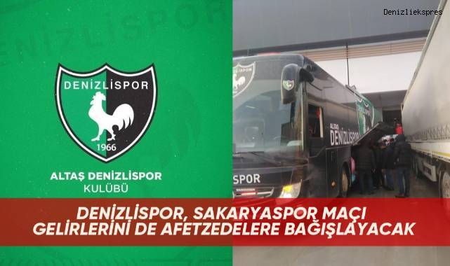 Deprem günü taraftarların da büyük destek verdiği yardımları kulüp otobüsüyle deprem bölgesine gönderen ve oradaki depremzedeleri Denizli'ye getiren Denizlispor, Sakaryaspor maçı gelirlerini de afetzedelere bağışlayacak.