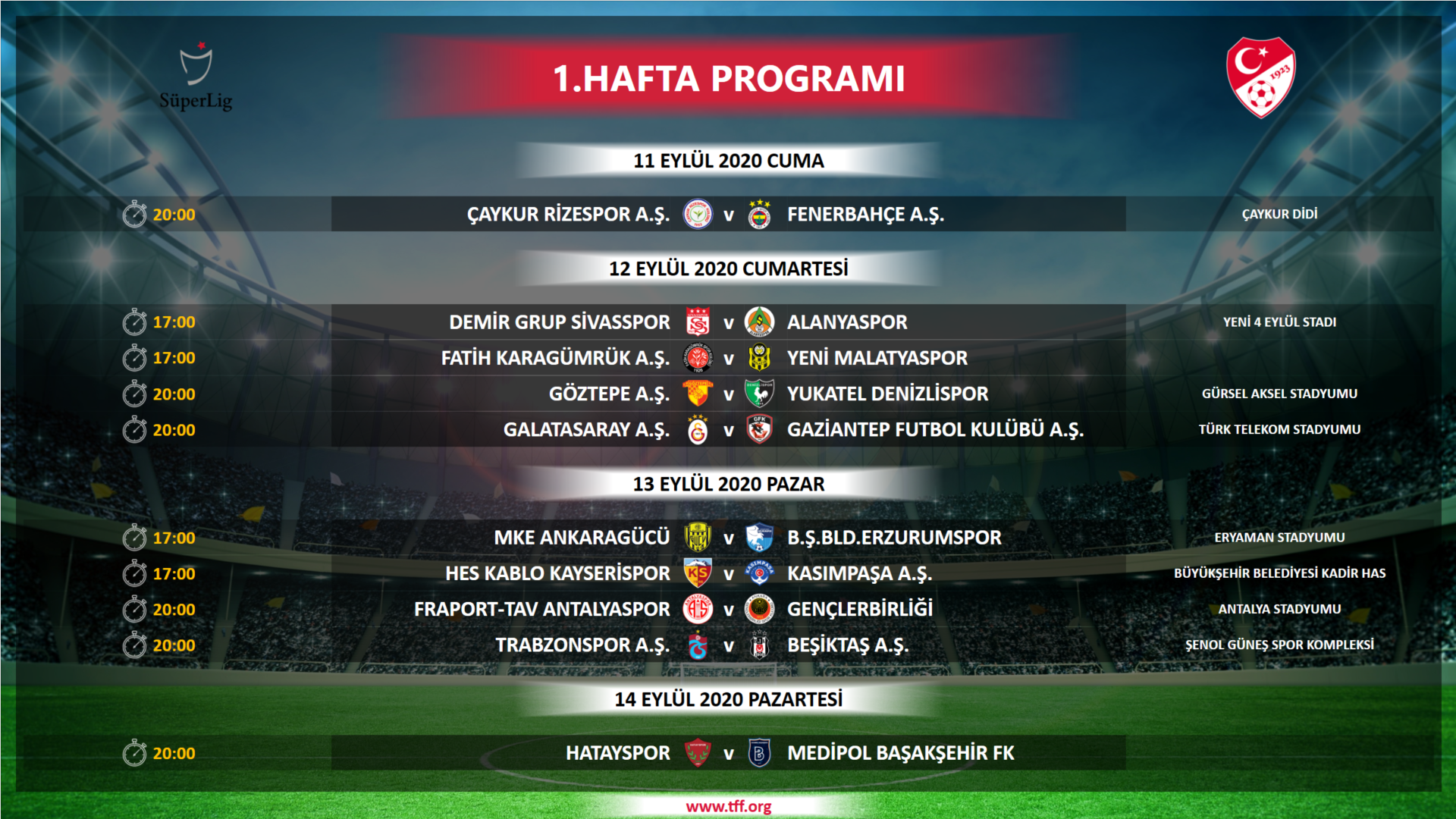 Türkiye Futbol Federasyonu, 2020-2021 Süper Lig’in ilk 4 haftalık fikstüründe maç günleri belli oldu. Yukatel Denizlispor yeni sezonda ilk maçında 12 Eylül Cumartesi günü bir başka ege temsilcisi olan Göztepe’nin konuğu olacak. Bir sonraki hafta müsabakası ise 19 Eylül Cumartesi günü gerçekleşecek. Yeşil siyahlı ekip Atatürk Stadyumunda Karadeniz ekibi Trabzonspor’u konuk edecek. 3. hafta müsabakaları kapsamında Yukatel Denizlispor, 28 Eylül pazartesi günü deplasmanda Antalyaspor ile karşılaşacak. Açıklanan 4 haftalık fikstürün son haftası ise 4 Ekim Pazar günü yeşil siyahlı ekip Konyaspor’u konuk edecek.