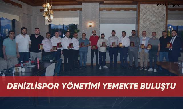 Altaş Denizlispor Başkanı Mehmet Uz, yönetim kurulu üyeleriyle Aşçı Nihat Restaurant’ta düzenlenen yemekte bir araya geldi. Geride kalan sezon verdikleri hizmetler dolayısıyla yönetim kurulu üyelerine teşekkür eden başkan Mehmet Uz, sezonun anısına yöneticilere plaket takdim etti.