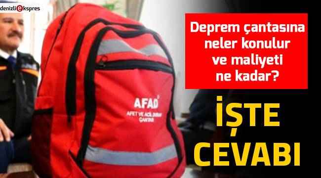 Bir deprem çantasında önemli belge fotokopileri, gıdalar, hijyen maddeleri ile bazı araç ve gereçlerin bulunması gerekiyor. Çantada kimlik kartları (nüfus cüzdanı, ehliyet), tapu, sigorta, ruhsat belgeleri, zorunlu deprem poliçesi, diplomalar, pasaport, banka cüzdanı, diğer (evcil hayvan sağlık karnesi) bulunması gerekiyor.