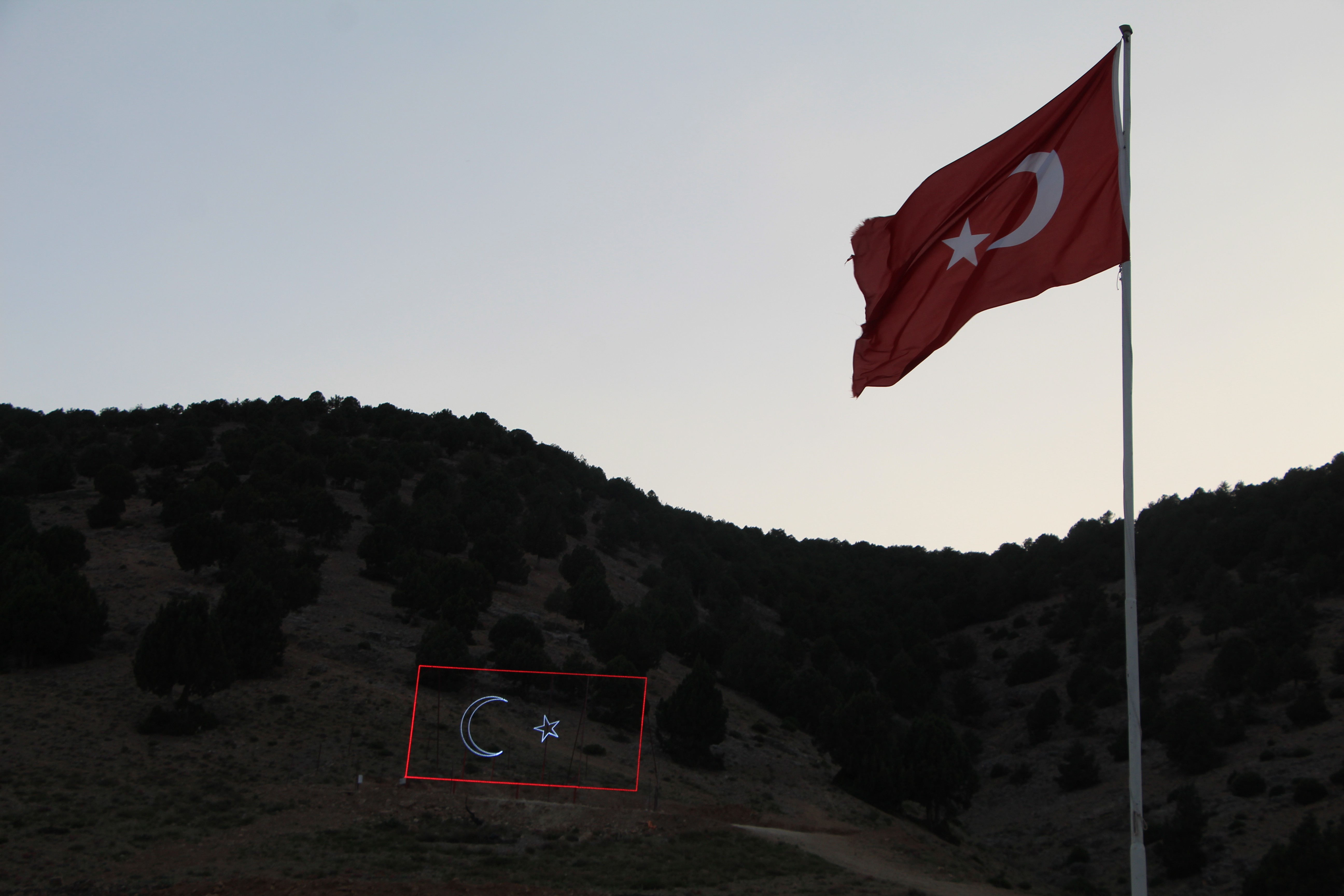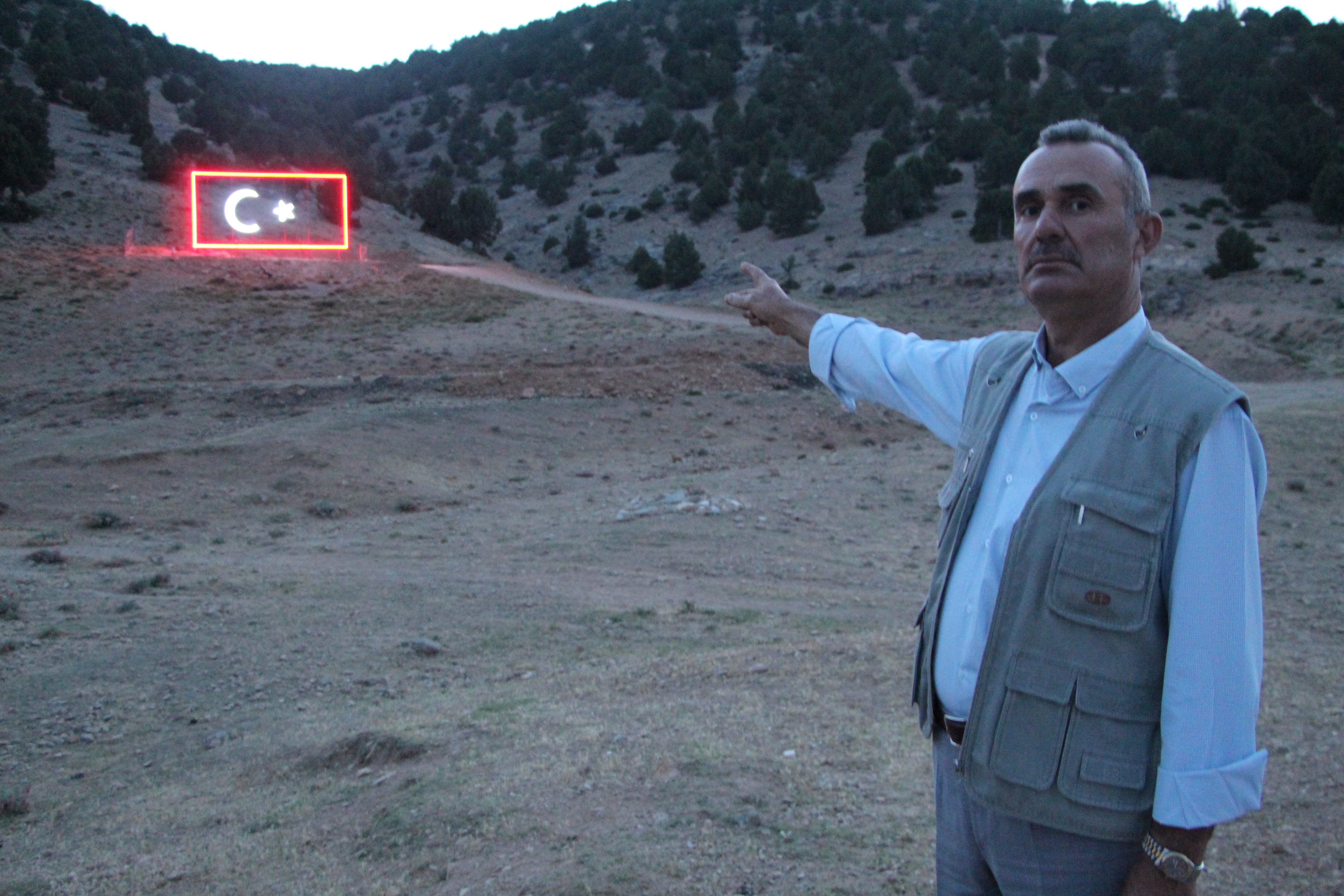 Mahalle sakinlerinden Mehmet Yüksel’de, “40 yıl önce Besni Dursun Hocamız burada öğrencilerine Atatürk Ormanı yazdırdı. Ondan sonra bizde bayrak sevgisi oluştu. Bu ışıklı bayrağımızı yaptık. Aşağıdaki mahallelerden seyrediyorlar. Hocamızın hatırasını yaşatıyoruz. 5 kilometre öteden bayrağımız gözüküyor” diye konuştu.