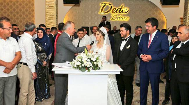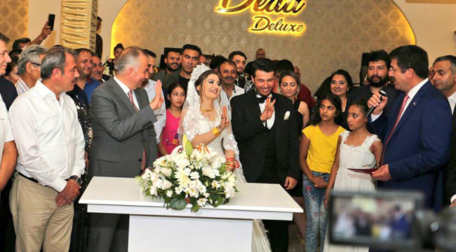 Denizli’de hafta sonuna Honaz Belediye Başkanı Turgut Devecioğlu’nun kızı Makbule ile Onur Utku’nun düğünü damga vurdu.Deda Düğün Salonu’ndaki düğün törenine Ekonomi Bakanı Nihat Zeybekci ve Vali Hasan Karahan başta olmak üzere, Adalet Bakan Yardımcısı Bilal Uçar, Büyükşehir Belediye Başkanı Osman Zolan, AK Parti Milletvekilleri Sema Ramazanoğlu, Şahin Tin, İl Başkanı Necip Filiz, ilçe belediye başkanı ve partinin önde gelen isimleri de katıldı.Çiftin nikahı, Bakan Zeybekci ve Başkan Zolan’ın şahitliğinde kıyıldı. Makbule-Onur Utku çifti evlilik cüzdanlarını Bakan Nihat Zeybekci’nin elinden aldı.Gelin ve damadın akraba ve arkadaşlarının salonu hınca hınç doldurduğu düğün töreninde genç çifti kutlamak isteyenler de uzun kuyruk oluşturdu.