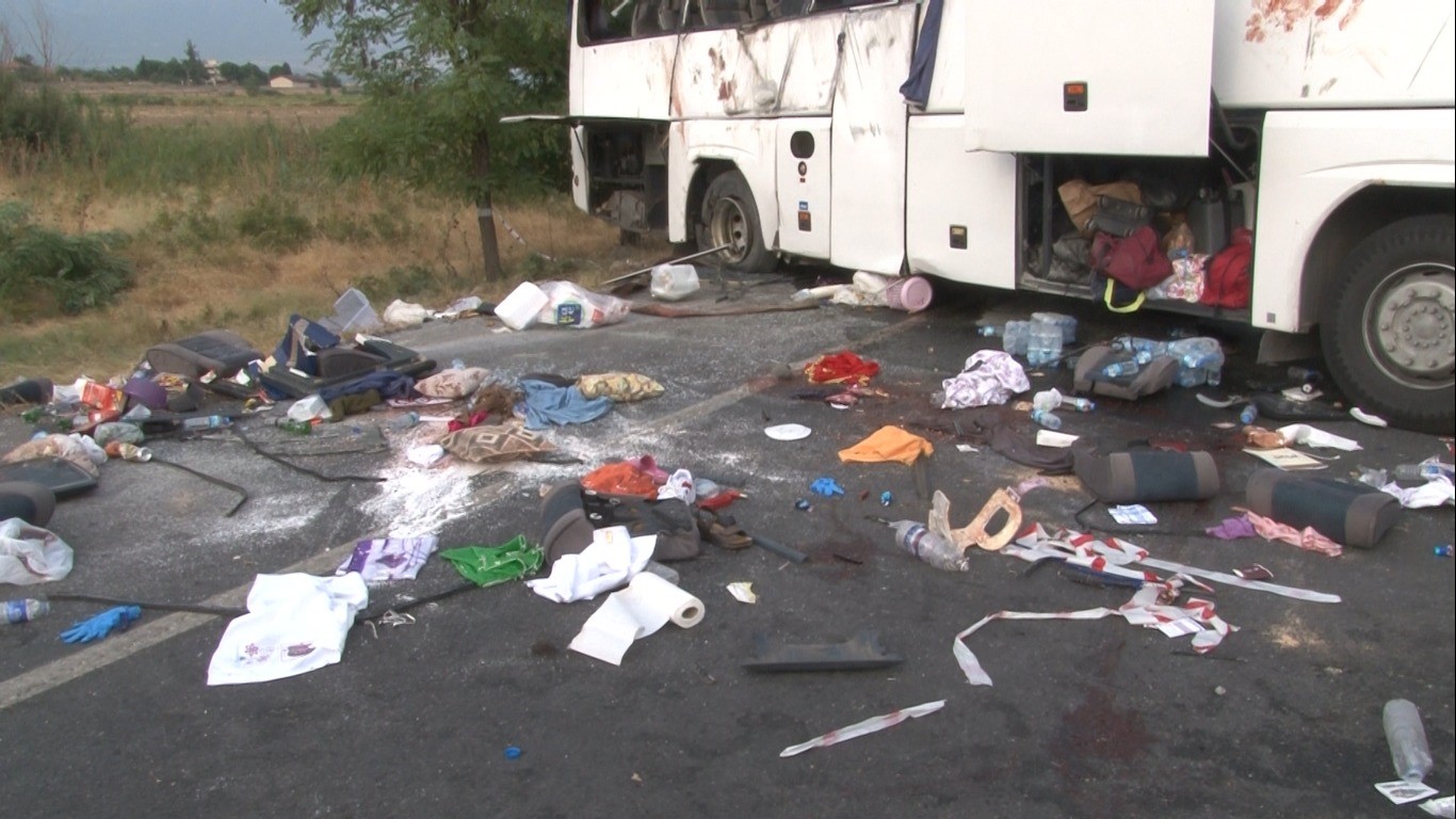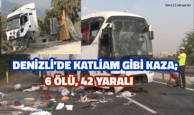 Denizli’nin Honaz ilçesinde kontrolden çıkan karayollarına ait kum yüklü tırın, bariyerleri yıkıp karşı şeride geçerek, düğünden dönen seyir halindeki yolcu otobüsüne çarpması sonucu meydana gelen kazada 1’i polis 6 kişi öldü, 42 kişi yaralandı.