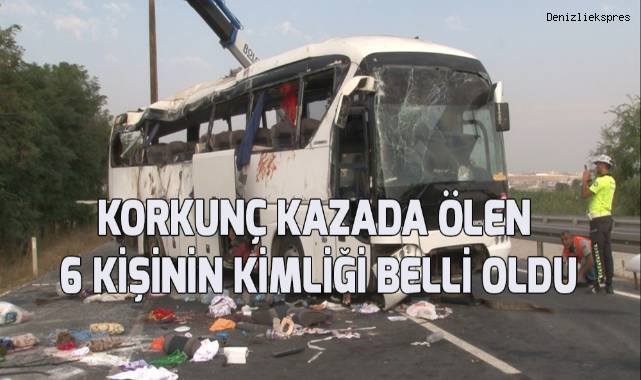 Denizli’de kum yüklü tırın, düğüne gidenleri taşıyan yolcu otobüsüne çarpması sonucu meydana gelen kazada hayatını kaybeden 6 kişinin kimlikleri belli oldu.