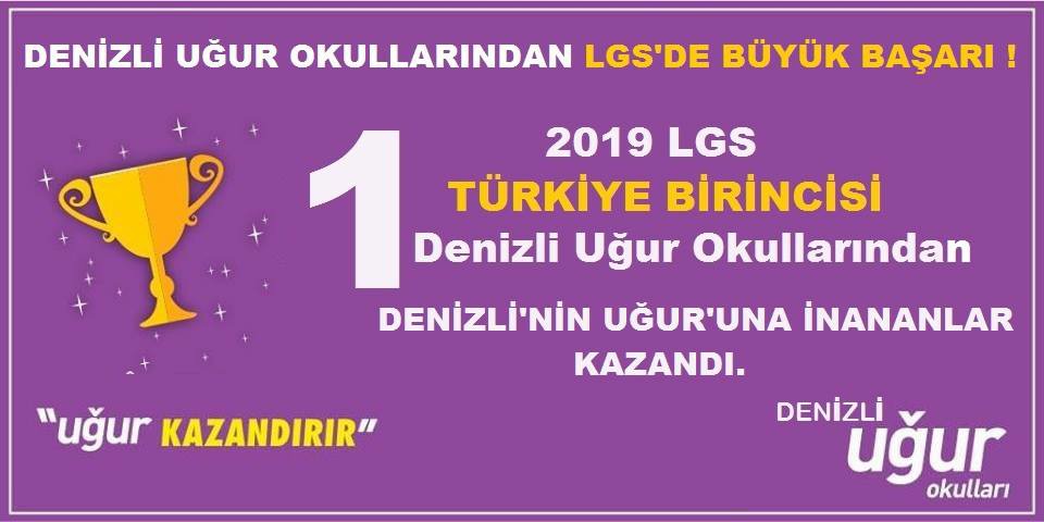 Milli Eğitim Bakanlığı'nca 2019 Liselere Geçiş Sistemi (LGS) kapsamında yapılan merkezi sınavın da tüm sorulara doğru cevap vererek 500 tam puan alan Denizli Uğur Okulları 8. sınıf öğrencisi Duygu Kayış Türkiye birincisi oldu.