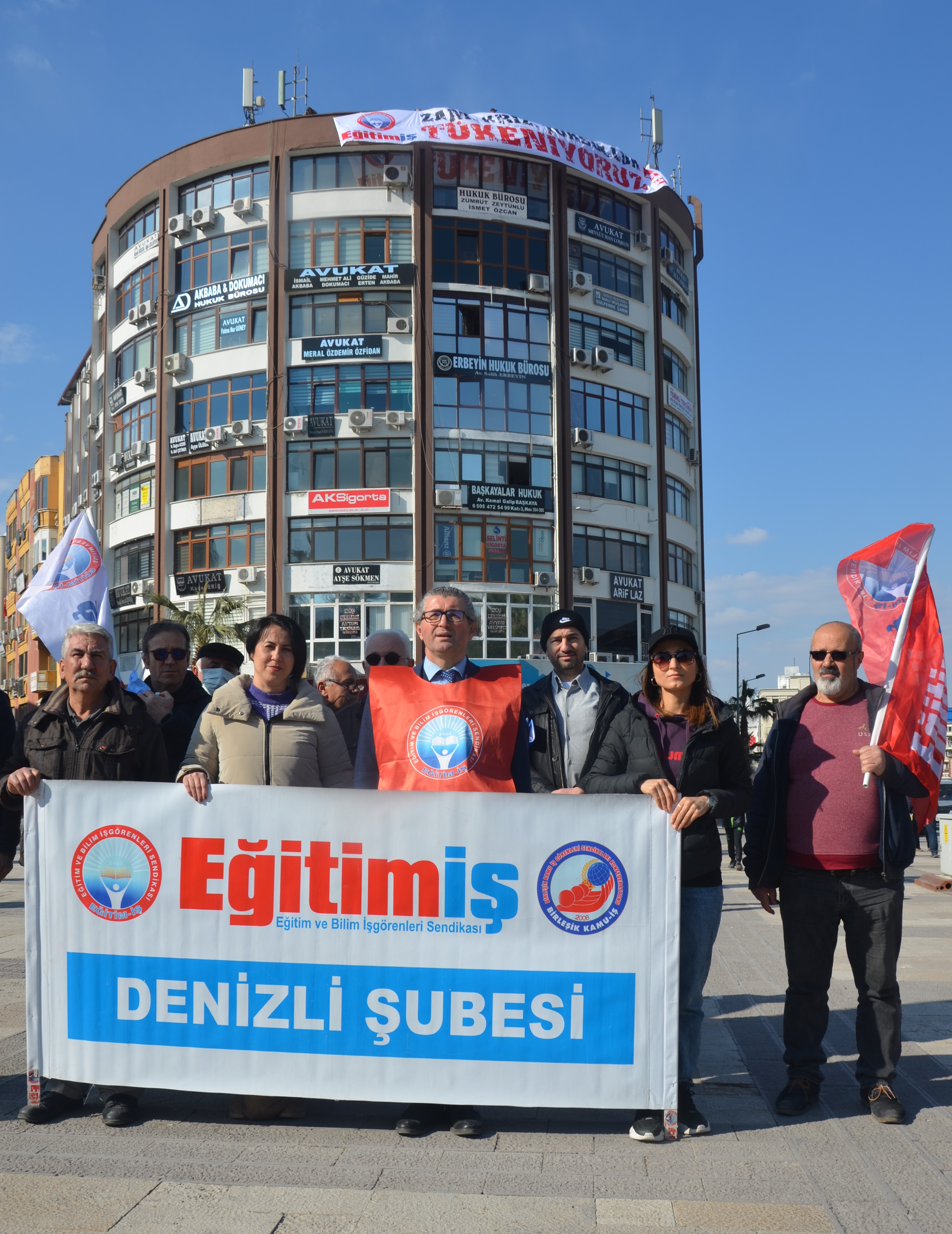Eğitim-İş Sendikası Denizli Şubesi şehrin görünür yerlerine pankart asarak elektrik, doğalgaz ve yakıta gelen zamları protesto ettiler. “Zam. Kriz. Yoksulluk. Tükeniyoruz.” yazan pankartlarla zamları protesto eden Eğitim-İş Sendikası Denizli Şube Başkanı Namık Kemal Aydoğan, bir basın açıklaması yaptı. Yaptıkları açıklamada, şu ifadelere yer verdi.