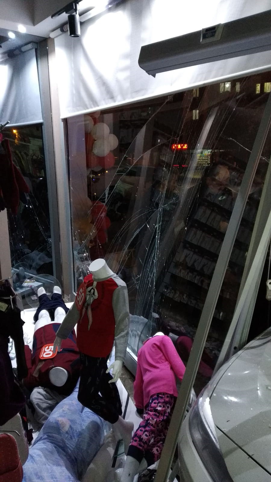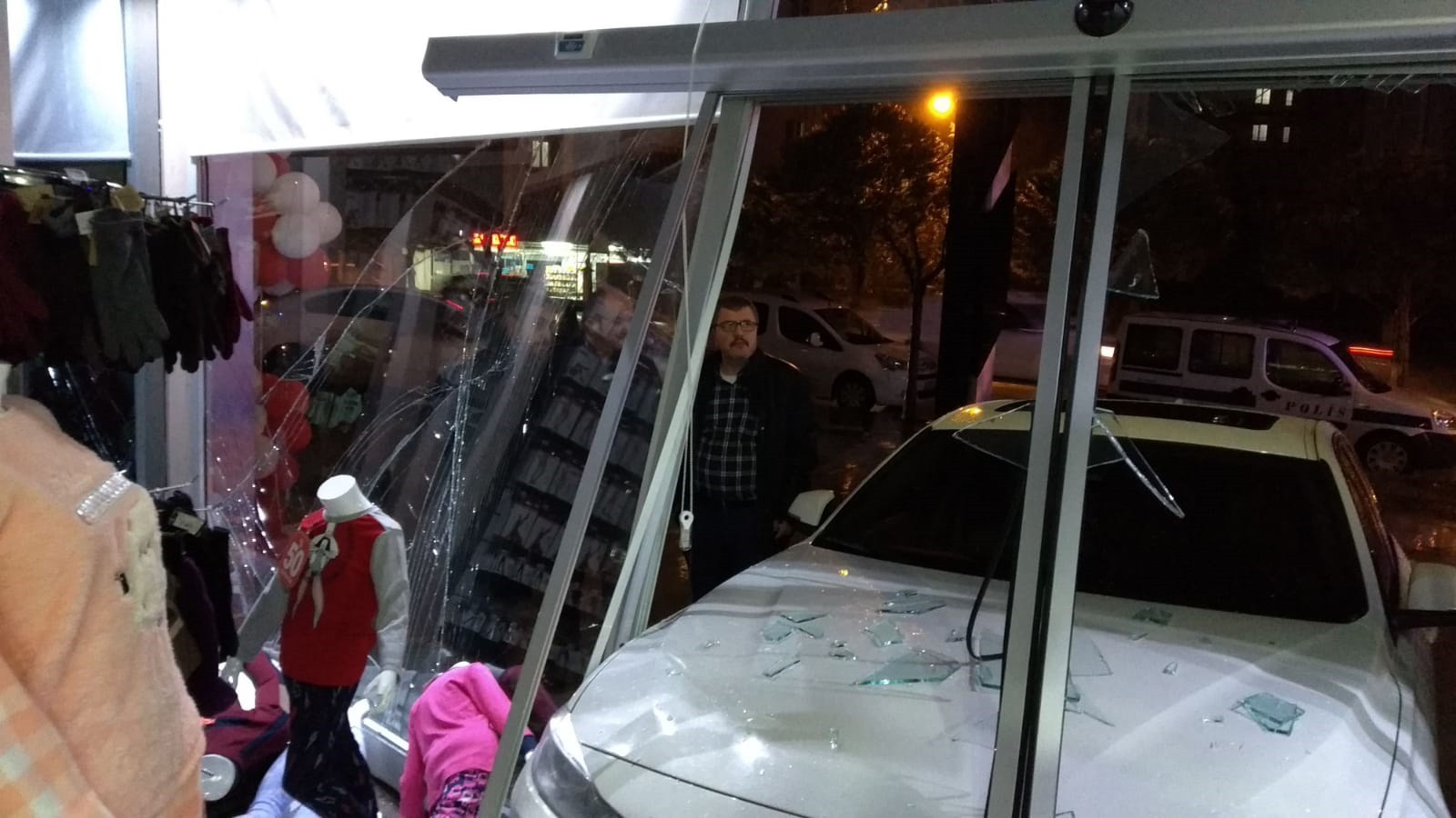 Kazayı duyan mahalle sakinleri dışarı çıktığında ilginç manzarayla karşılaştı. İhbar üzerine olay yerine gelen polis ekipleri inceleme yaptı. Mağazanın giriş kapısı ve camları kırılırken, vitrinde bulunan ürünler ise zarar gördü.