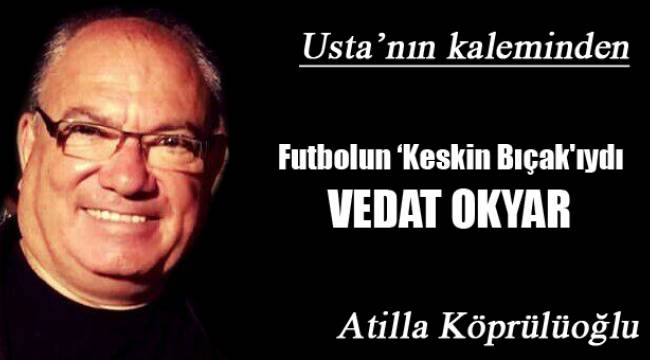 ‘’Geldim yarım, kaldım yarımNeydi, ne oldu şu tez canım,Ertelendim hayattan, sevdim yarım,Derken bugün olmazsa, olur yarınKendimden kaçak/Yarim keskin bıçakNerde bende o yürek/Yardan cayacakKendimden kaçak /Yarim keskin bıçakNerde bende o yürek/Yardan cayacakHep köşe bucakGeldim yarım, kaldım yarımNeydi, ne oldu şu tez canımErtelendim hayattan, sevdim yarımDerken bugün olmazsa, olur yarınKendimden kaçak/Yarim keskin bıçakNerde bende o yürek/Yardan cayacakKendimden kaçak/Yarim keskin bıçakNerde bende o yürek/Yardan cayacakHep köşe bucakBen bu dünyayı anlayamadımNiyetlendim de altından kalkamadımKendimden kaçak/Yarim keskin bıçakNerde bende o yürek/Yardan cayacakKendimden kaçak /Yarim keskin bıçakNerde bende o yürek /Yardan cayacakHep köşe bucak’’’ ***Sezen Aksu’nun popülerleştirdiği, neredeyse -her aşığın cebinden-sözlerinin çıktığı bestesidir ‘’Keskin Bıçak’’…Google'a girdiğinizde ‘’Söz/müzik: Sezen Aksu’’ yazar.Hiç de öyle değildir!Bir futbolcuya, hem de çok ünlü bir futbol virtüözüne aittir şiir.Karakartal Beşiktaş’ın ‘’Sevda Dolu Yüreği’’ Vedat Okyar’ındır.Sezen Aksu’ya vermiştir şiiri, kendisinin olduğunu -nedense-kimsenin bilmesini istememiştir.40 yıl ''yürek arkadaşlığı" yaptığı eşiyle bir tartışma sonucuevi terk etmiş, gece eve dondüğünde uyku tutmamış, bu şiiri de yazmış, ilk ve son gözağrısı Asuman Hanım'a...Samimidir...Duygudur Vedat Kaptan!.. ***Bursaspor yıldızıyken Beşiktaşlı olmuştur. Teknik kapasitesive oyun kuruculuktaki zekasıyla dikkati çeken Okyar,Siyah-Beyaz’ın simge ismi "çArşı’'nın gönlü olmuştur.Beşiktaş’ta 253 maçta forma kuşanmış, futbol yaşamında43 penaltı atmış, yalnızca bir tanesini kaçırmıştır.33 kez de Ay-Yıldız’ı taşımıştır göğsünde.Brezilyalı sambacılarınkine benzer tekniğiyle zarif futbolunu birleştirmiştir. ***Dobracılığı müthistir..Bir anekdot, Bursaspor’da yan yana oynadığı,ardından Beşiktaş'ta top koşturduğu santrfor Tezcan Ozan’dan:‘’İnönü’deydi maç. Rakip oyuncu öyle sıkı birtekme attı ki Vedat’a, o kibar adamdan nasılsa küfür çıktı! Rakip dehakeme koştu. Hakem de o günlerin efsanesi; Doğan Babacan.(2 ay önce kabettiğimiz, hani 1974 Dünya Kupası’nda düdük çalan, B.Almanya-Şili maçındaŞilili Cazzely’e kırmızı kartı çakan hakem) Vedat’ın küfür edeceğineihtimal vermiyor ama yine de yanına gidip sordu.Vedat, ‘Evet, ettim’ dedi.Babacan’ın kırmızı kartı havada! Tekmeyi yiyen "BeyefendiVedat" oyundan atıldı(!)Olayın birebir tanığıyım. Vedat’a, ‘Niye ettim' diyorsun.'Etmedim' deseydin ya’ dedim.Yanıtı hiç aklımdan çıkmıyor:‘'Üstümde Beşiktaş forması varken yalan mı söyleyecektim!'Böyle de sözünün eridir ‘'Babadan BJKli’' Kaptan!"(Babası Rahmi Okyar, Beşiktaş 2.başkanıydı)Ayrıca; Kartal’dan transfer ücreti, prim, maaş almayantek futbolcudur da... ***Yasemin Boran, 16 yıl önce çok net tanımlamış Kaptan’ı:‘’Vedat Okyar için ‘Yaşamak’ keyif almak demek.Şimdiye kadar keyif almadığı hiçbir şeyi yapmadığınıherkese söyleyen ve söylediği gibi yaşayan biri o.Yani; felsefesini yaşayan biri. Hayatında bildiğitek şey futbol.’’Biz de ekleyelim;ülkemizin ‘’Spor Kültürü" Beşiktaş’'ın‘’Keskin Bıçak’’ıydı Vedat Kaptan…Dokuz yıl önce bugün yitirdik ‘’Bir türkünün/şiirin derin ağaçlığında!..’’