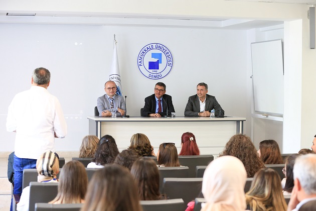 Mühendislik Fakültesi Konferans Salonu’nda Tekstil Mühendisliği Bölüm Başkanı Prof. Dr. Yıldıray Turhan öncülüğünde düzenlenen etkinliğe Rektör Prof. Dr. Ahmet Kutluhan ile Rektör Yardımcısı Prof. Dr. Necip Atar ile birlikte katıldı.