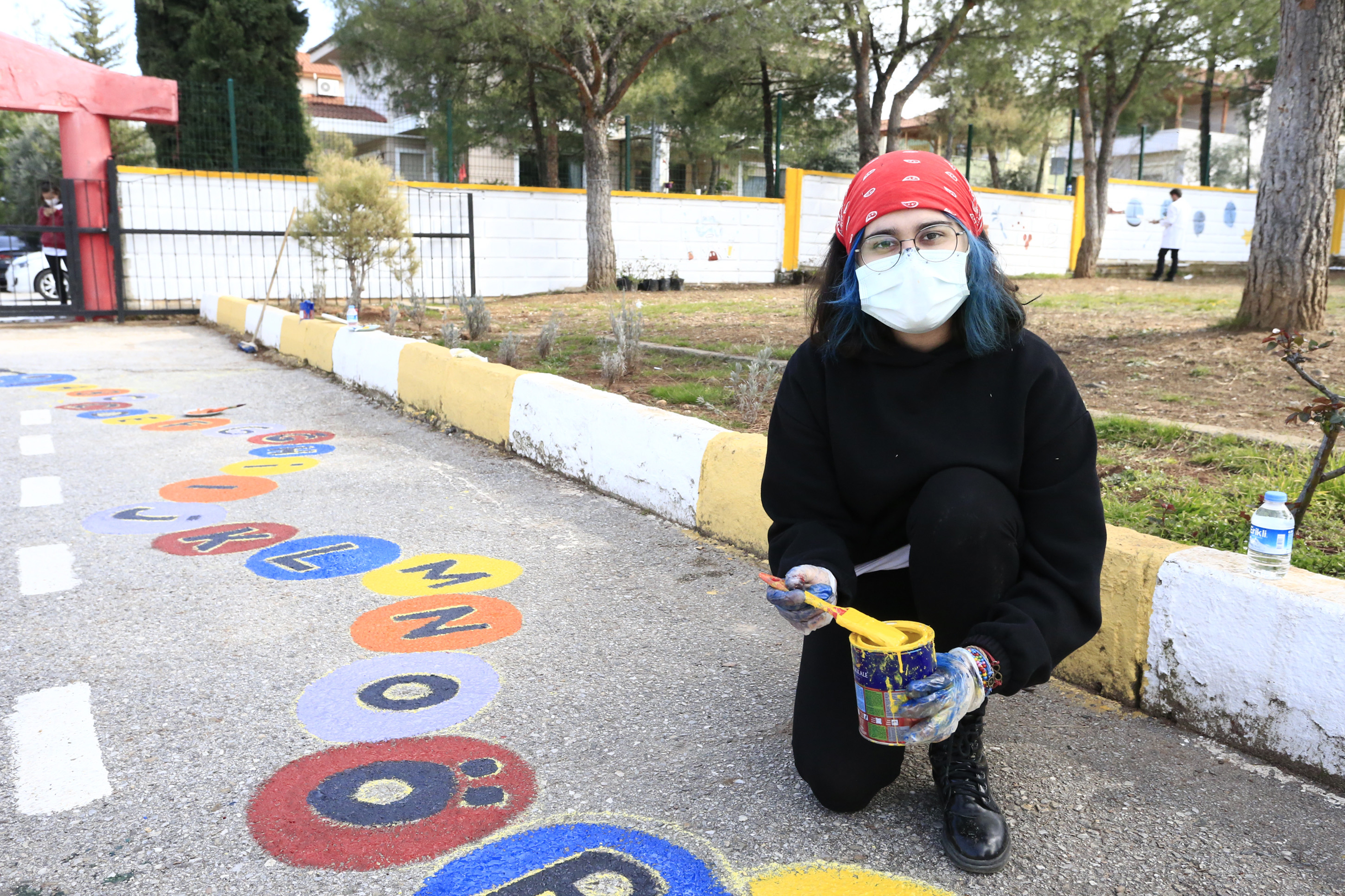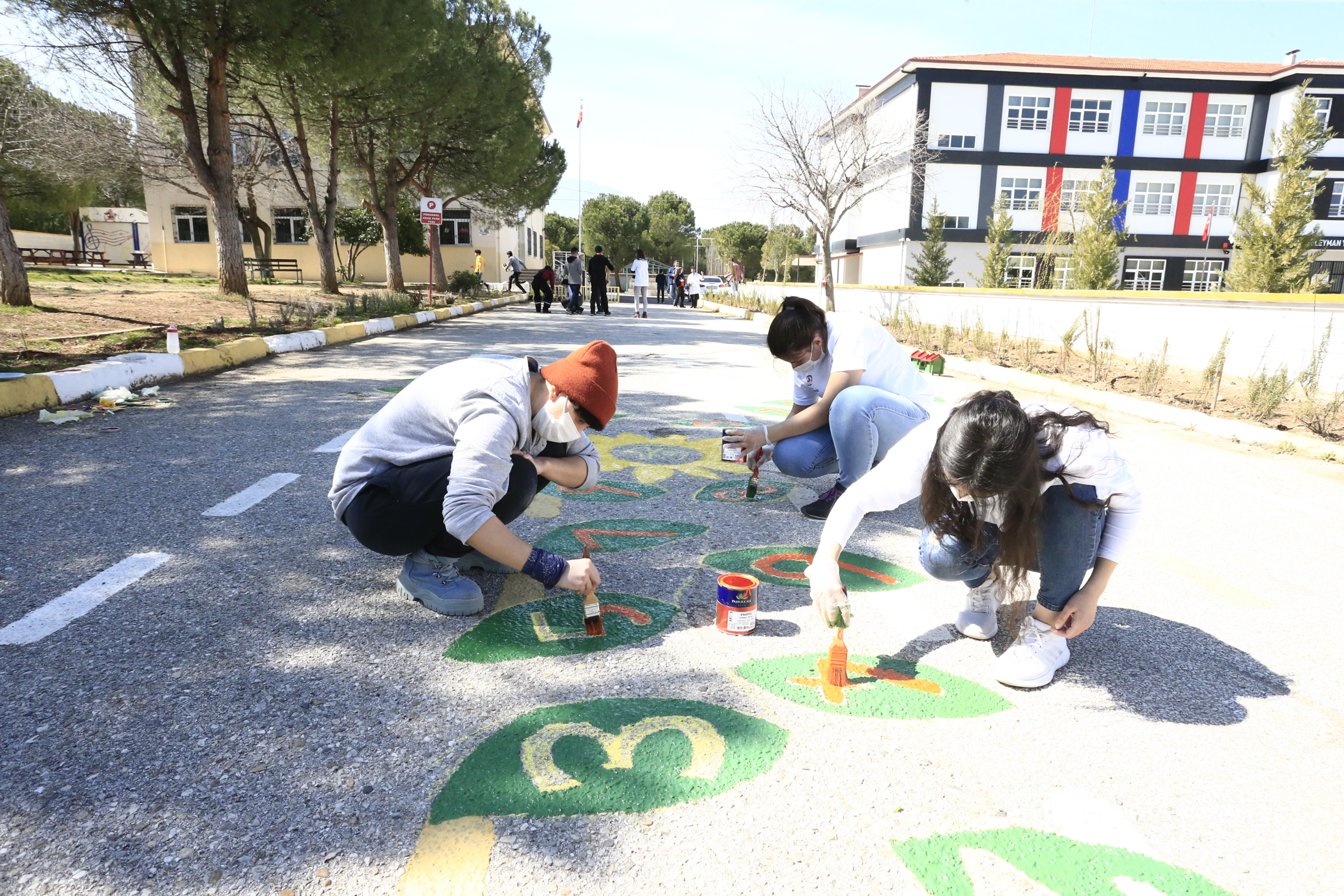 Denizli Büyükşehir Belediyesi Kent Konseyi Gençlik Meclisi, Geleceğe Değer Projesi kapsamında Hacı Şakir-Meliha-Nilüfer Öz İlköğretim Okulu’nun bahçesi ile duvarlarını minik öğrenciler için renklendirdi. Etkinlikte gençler, okul bahçesinde minik öğrencilerin çeşitli geleneksel oyunları oynayabilmeleri için çizimler gerçekleştirdi. Programda okul duvarları da çeşitli resim ve karakterlerle boyandı. Denizli Büyükşehir Belediyesi Kent Konseyi Gençlik Meclisi’nin yaşanan pandemi nedeniyle çalışma ve projelerine bir süre ara verdiklerini kaydeden Gençlik Meclisi Başkanı Tunahan Birden, gönüllülük çalışmalarının pandemi kuralları çerçevesinde devam edeceğini söyledi.