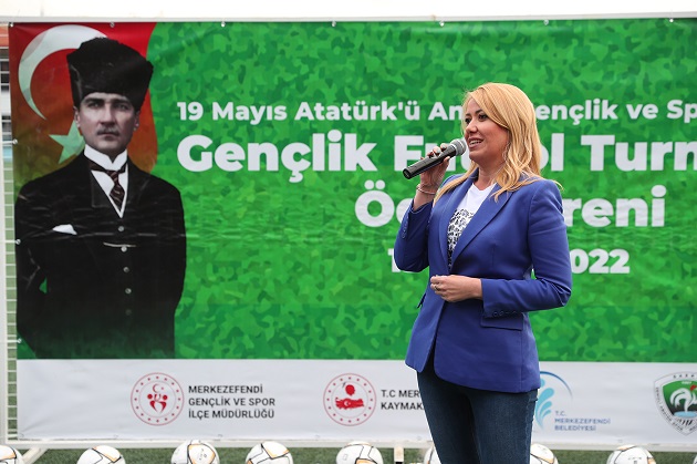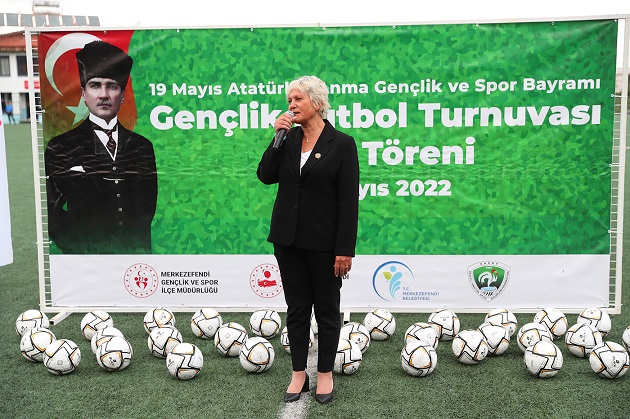Merkezefendi Belediye Başkanı Şeniz Doğan, “Bu güzel bayramı Merkezefendimizde coşkuyla yaşamak için çeşitli etkinlikler gerçekleştirdik. Bayramın içinde gençlik varsa, Atatürk varsa, umut varsa sporun olması gerekiyordu. Gençler harikasınız. Spor yapmayı bırakmayın. Atatürk’ün dediği gibi, ‘Sağlam kafa, sağlam vücutta olur’ Bu vatan gençlere, sizlere emanet. Çünkü bugün sizlerden aldığımız enerji, sizlerden aldığımız azimle biz işlerimizi devam ettiriyoruz, projelerimizi gerçekleştiriyoruz. Büyük Önder Mustafa Kemal Atatürk, 19 Mayıs Gençlik ve Spor Bayramı’nı gençlere armağan etti. Bu ülkenin geleceği gençlere emanet elindeydi, gençlerin akıllarıydı, gençlerin fikirleriydi. Bizlerde onun izinden aklın ve bilim yolundan bir gün olsun ayrılmayarak Atatürk ilke ve devrimlerinin ışığından var gücümüzle çalışıyoruz. Bugün bu turnuvaya katılan bütün kulüplerimize, gençlerimize, hocalarımıza çok teşekkür ediyoruz” diye konuştu.