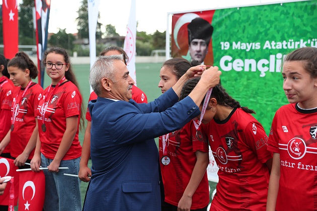 Genç sporculara madalya ve kupalarını protokol üyeleri tarafından takdim edildi.