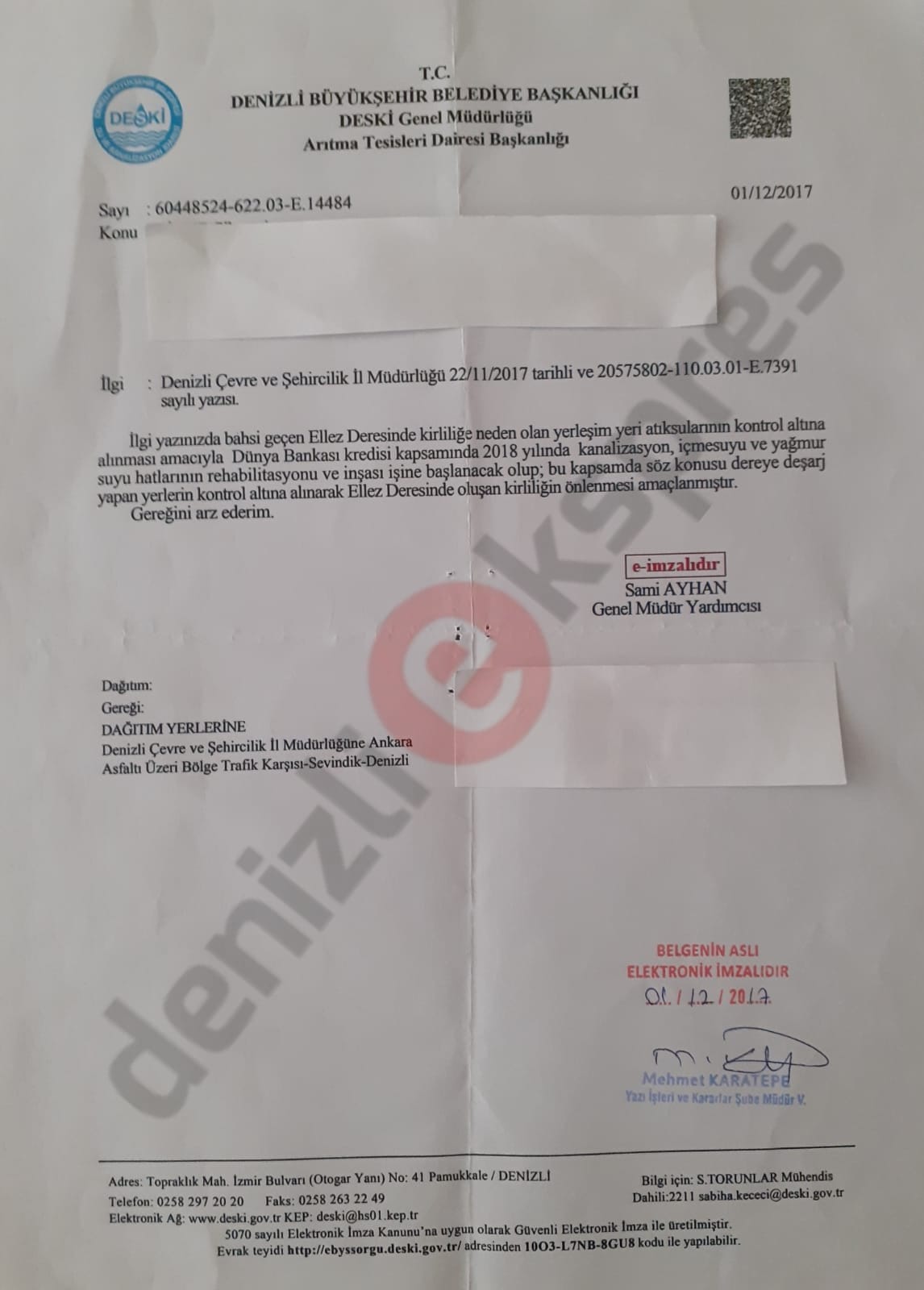 DenizliEkspres'in ortaya çıkardığı 2017 tarihli resmi belge, yıllardır kamuoyunu meşgul eden Ellez Deresi tartışmalarına yeni bir boyut kazandırdı. Dönemin AKP’li Büyükşehir Belediye Başkanı Osman Zolan’ın, Dünya Bankası kredisiyle Ellez Deresi’ni temizleyeceklerini açıklamasının üzerinden 7 yıl geçti. Ancak aradan geçen sürede ne derenin kirliliği giderildi ne de projeye dair somut bir adım atıldı.