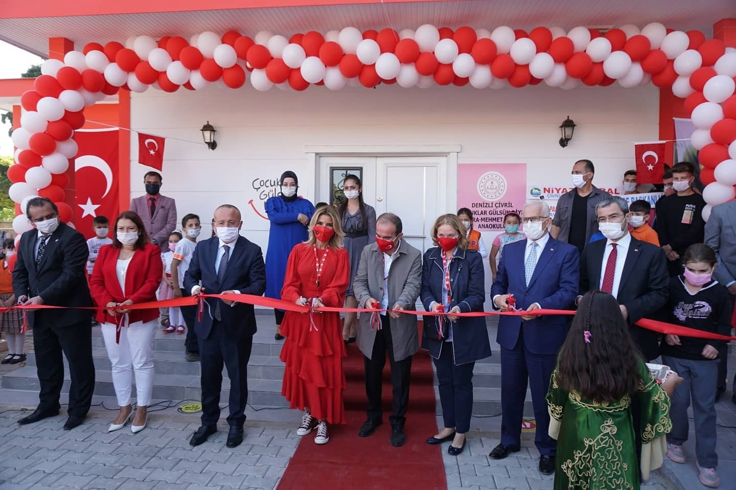 Açılışa katılan Çivril Belediye Başkanı Niyazi Vural, Sanatçı Gülben Ergen'e Çivril'de yetişen ürünlerden geleneksel ve ev yapımı yöntemler ile üretim yapan Sebahat Tanışman'ın Geleneksel Köy Ürünleri'nden takdim etti. Milli Eğitim Bakanlığı'na bağışlanan Çocuklar Gülsün Diye Derneği tarafından açılan 2 derslik anaokulunda 40'a yakın öğrenci eğitim alacak.