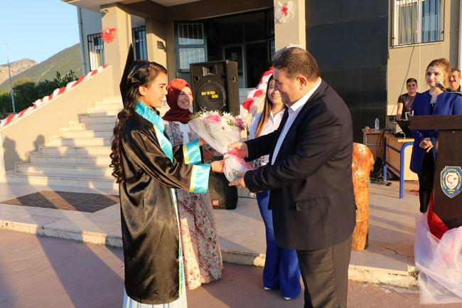 Eğitime katkı konusunda Belediye olarak her türlü imkânı kullandıklarını belirten Honaz Belediye Başkanı Turgut Devecioğlu’da konuşmasında; “2010 yılında okulun yapılması konusunda hayırsever büyüğümüz Merhum Himmet Özçelik ile ilk görüşmemizin ardından 1 yıl gibi kısa bir sürede inşaatı tamamlandı. Ancak kendisi açılışını göremeden vefat etti. Değerli eşi Nimet Özçelik Hanım, kızı Fatma ve oğlu Ferhat desteklerini hala sürdürmekte. Bu vesile ile kendilerine çok teşekkür ediyor, Himmet ağabeyimize Allah’tan rahmet diliyorum. Mezun olan gençlerimizin geleceklerinin açık ve başarılı olmasını yürekten temenni ediyor, bundan sonraki yaşamlarında başarı ve kolaylıklar diliyorum.” şeklinde konuştu.Törende konuşmaların ardından okul yönetimi ve öğretmenler tarafından dereceyle okuldan mezun öğrencilere mezuniyet belgeleri verildi. Öğrenciler kep atarak mezun olmanın sevinç ve heyecanını yaşadılar.