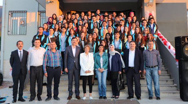 Himmet Nimet Özçelik Anadolu Lisesi bahçesinde düzenlenen törene Honaz Kaymakamı Zafer Öz, Honaz Belediye Başkanı Turgut Devecioğlu, hayırsever İşadamı Merhum Himmet Özçelik’in eşi Nimet ve kızı Fatma Özçelik, İlçe Milli Eğitim Müdürü Osman Duran, veliler ve öğrenciler katıldı.Törene İstanbul’dan gelerek katılan hayırsever İşadamı Merhum Himmet Özçelik’in kızı Fatma Özçelik yaptığı konuşmasında; “Güzel ilçemiz Honaz’da, bu güzide eğitim kurumundan mezun olan tüm öğrenciler ile gurur duyuyorum. Rahmetli babam Himmet Özçelik’te bu anı görseydi, o da mutlaka sizlerle gurur duyardı. Hepinize bundan sonraki yaşamlarınızda başarılar diliyorum. Bizler için çok değerlisiniz. ” dedi.