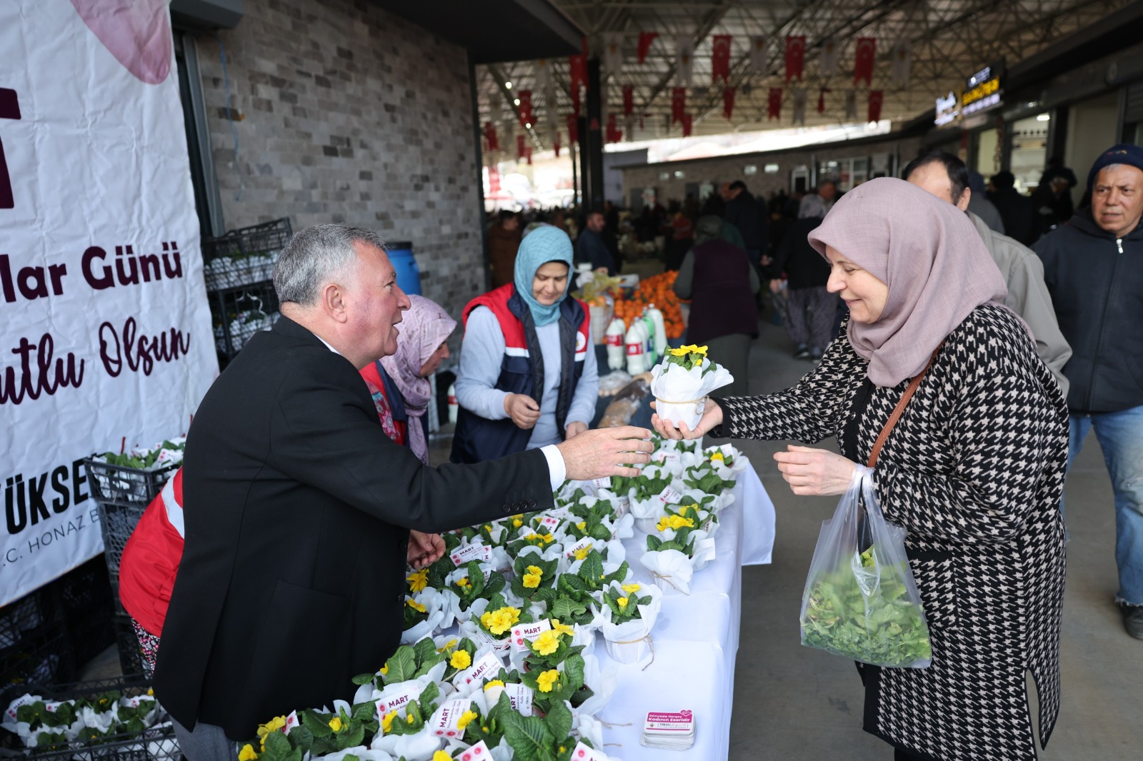 Honaz Belediyesi, 8 Mart Dünya Kadınlar Günü dolayısıyla Yerel Tohum Merkezi’nde yetiştirilen çuha çiçeklerini Honazlı kadınlara dağıttı. Honaz Kapalı Pazaryeri’nde gerçekleştirilen etkinlikte Belediye Başkanı Yüksel Kepenek çiçekleri kadınlara bizzat takdim etti.
