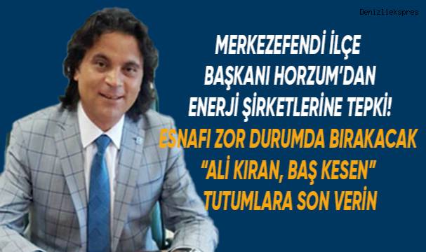 Merkezefendi İlçe Başkanı Ali Osman Horzum Enerji şirketinden esnafa gelen, 2 yıllık sözleşmenin iptal edileceği konusundaki mesaja sessiz kalmadı. Horzum, yayımladığı mesajda Enerji şirketlerine büyük tepki gösterdi. “Esnafı zora sokan, ‘Ali kıran, baş kesen’ tutum ve davranışlara son verin” diyen Horzum; “Elektrik Firmasının yaptığını esefle kınıyor, yetkilileri bu konuda göreve çağırıyorum” diye konuştu.