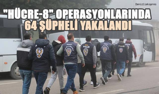 "Hücre-8" operasyonlarında 64 şüpheli yakalandı.