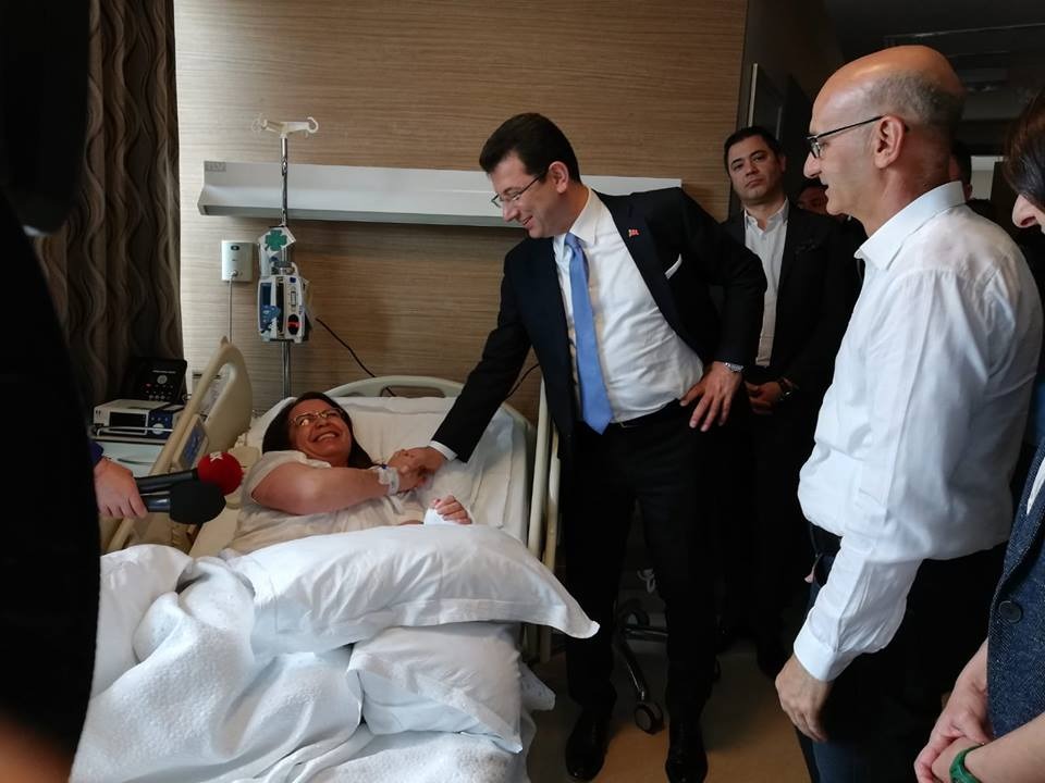 CHP Genel Başkan Yardımcısı ve Denizli Milletvekili Gülizar Biçer Karaca dün, Ekrem İmamoğlu’nun mazbatasını almaya giderken Çağlayan Adliyesinde çıkan arbede de yaralanmış ve gece ameliyata alınmıştı. Karaca’nın sağlık durumunun iyi olduğu bildirilirken, yeni başkan Ekrem İmamoğlu sabah Karaca’yı Florence Nightingale Hastanesi’nde ziyaret etti.Sol koluna yirmi dikiş atılan Karaca’yı ziyarete gelen Ekrem İmamoğlu ile hoş sohbet eden Karaca, İmamoğlu’nu Honaz’a davet etti. 2 Haziran’da Honaz’da tekrarlanacak olan seçim için desteğe gelmeye söz veren İmamoğlu, “Honaz’da da, seçimi kazanıp mazbatayı alacağız” dedi.