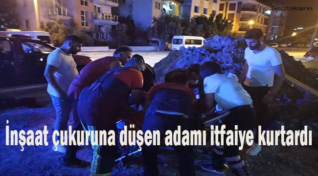 Olay, Pamukkale ilçesi Asmalıevler Mahallesinde meydana geldi. Henüz ismi öğrenilemeyen bir vatandaş, akşam saatlerinde yürüdüğü sırada bir anda ayağı kaydı. Yan tarafında bulunan inşaat çukuruna düşen adam yaralandı. Yardım çığlıkları üzerine olay yerine gelen vatandaşlar yaralı adama yardım etmek istese başarılı olamadı. Çevredeki vatandaşların ihbarı üzerine olay yerine itfaiye, polis ve sağlık ekibi sevk edildi. bölgeye gelen itfaiye ekipleri, halat yardımıyla ulaştıkları yaralı adamı yukarıya çıkardı. Sağlık ekipleri tarafından Pamukkale Üniversitesi Hastanesine kaldırılan adamın sağlık durumunun iyi olduğu öğrenildi.