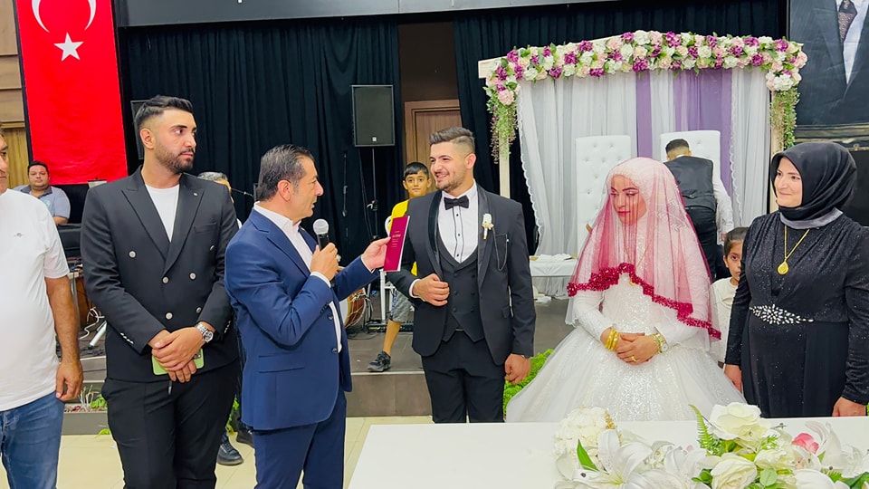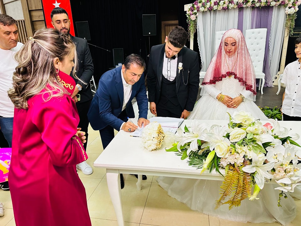 Merkezefendi Belediyesi Bereketler Toplantı ve Sergi Salonu'nda gerçekleşen düğün töreninde, nikah şahidi Denizli Ticaret Odası Başkanı Uğur Erdoğan oldu.