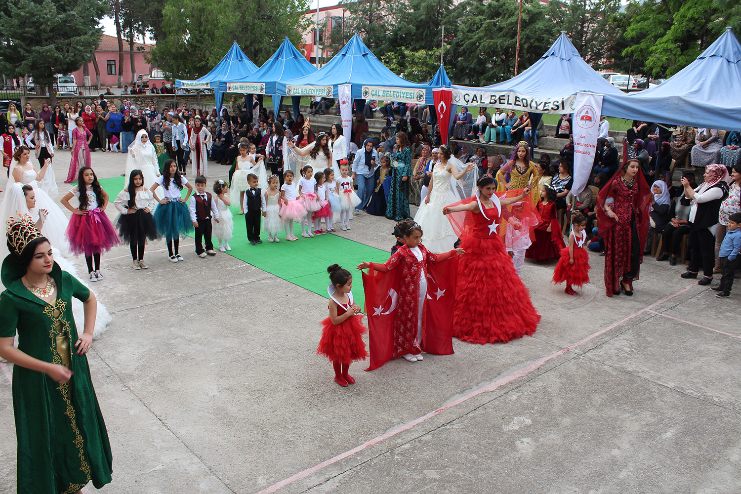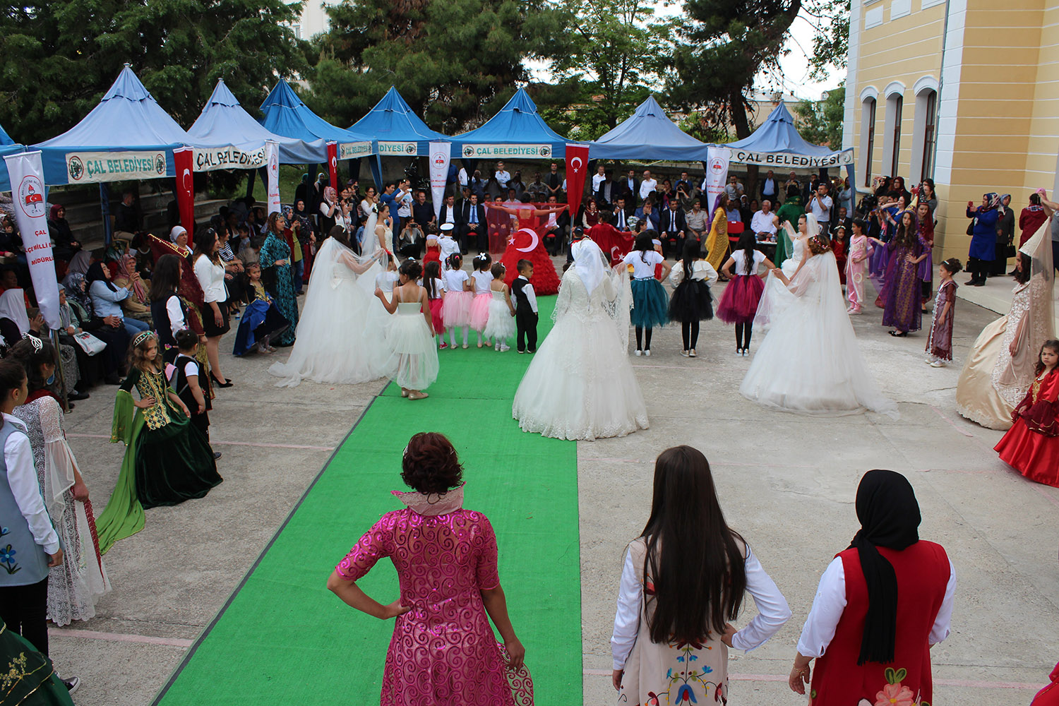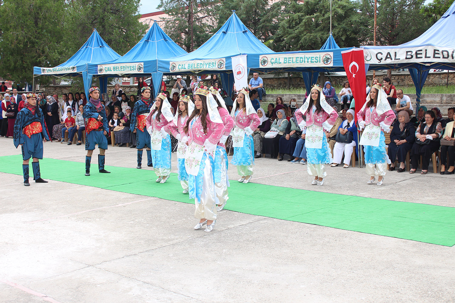 Çal Halk Eğitim Merkezi Müdürlüğü’nce Hayat boyu Öğrenme Programı kapsamında üretilen el emeği göz nuru ürünler, yıl sonu sergisiyle görücüye çıktı. Kursiyerler tarafından hazırlanan ay yıldızlı gelinlik ise, görenleri büyüledi.Tarihi Gazi Mektebi’ndeki kursa ilgi büyük oldu. Kaymakam Yusuf Durani Dinç, Belediye Başkanı Fethi Akcan, İŞKUR İl Müdürü Fatih Işık, ilçe protokolü ve çok sayıda davetlinin katıldığı kursun açılışında mini bir defilede oldu. Defilede en fazla dikkati, boyun kısmında hilal, göğüs kısmında yıldız olan al renkli gelinlik dikkat çekti. Sevil Gül Ertekin’in giydiği gelinliği görenler büyük ilgi gösterdi, onlarca kişi gelinliğin fotoğrafını çekti.