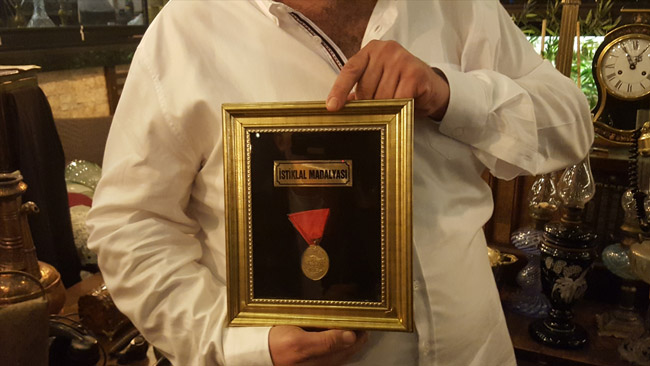 Açık artırmada 89 yıllık bir İstiklal madalyası da görücüye çıktı. Devlet tarafından 1930 yılında bir Kurtuluş Savaşı gazisine verilen 89 yıllık İstiklal Madalyası, 10 lira ile başlayan açık artırmaya katılan bir kişi tarafından 650 liraya satın alındı.