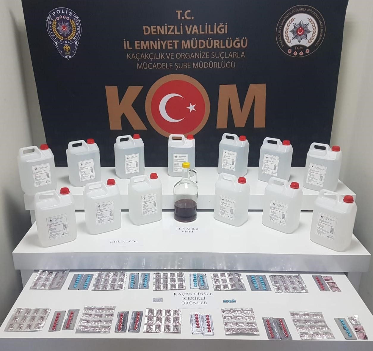 Denizli İl Emniyet Müdürlüğü Kaçakçılık ve Organize Suçlarla Mücadele (KOM) ekipleri, yeni yılın son haftasında kaçakçılara yönelik operasyonlar düzenledi. Operasyonlar kapsamında tütün ve tütün mamülü, sahte içki çeşitli eşya kaçakçılığı yapan şahısları tespit eden KOM ekipleri, fiziki ve teknik takibe aldı. kısa süreli takibin ardından operasyonlar düzenlendi. Bu kapsamda 71 şişe sahte alkol, 65 litre etil alkol, 9 kilogram tütün, 3 ruhsatsız tabanca, ruhsatsız av tüfeği, 25 adet mermi ve 236 adet cinsel içerikli ürün ele geçirildi. 5 şüpheli gözaltına alındı.