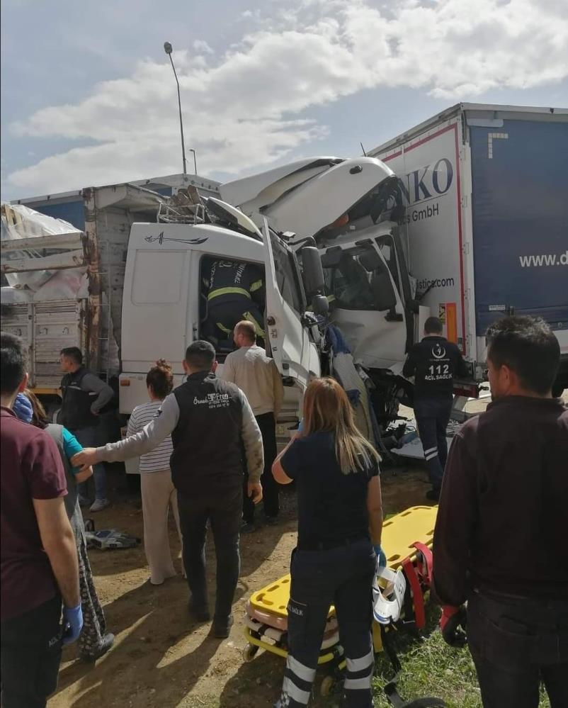 Kaza, Pamukkale ilçesi Pınarkent Mahallesi’nde meydana geldi. Edinilen bilgilere göre; kontrolsüz kavşaktan anayola bağlanmak için uzun süre bekleyen yüklü tır, Denizli kent merkezine seyir halinde olan kamyon sürücüsünün sesli ikazına rağmen kavşağa giriş yaptı. Ana yola giriş yapan tır ile kafa kafaya çarpışan kamyon, önüne kattığı araçla birlikte sürüklenmeye başladı.Çarpışma sonrası metrelerce sürüklenen iki araç, park halindeki bir başka tıra çarparak durabildi. Çevredeki vatandaşların ihbarı üzerine bölgeye itfaiye, sağlık ve jandarma ekipleri sevk edildi. Araçlarda sıkışan iki sürücü itfaiye yardımıyla kurtarılarak sağlık ekipleri tarafından hastaneye sevk edildi. Kazada iki sürücünün ağır yaralandığı ve hastanede tedavilerinin sürdüğü öğrenildi.