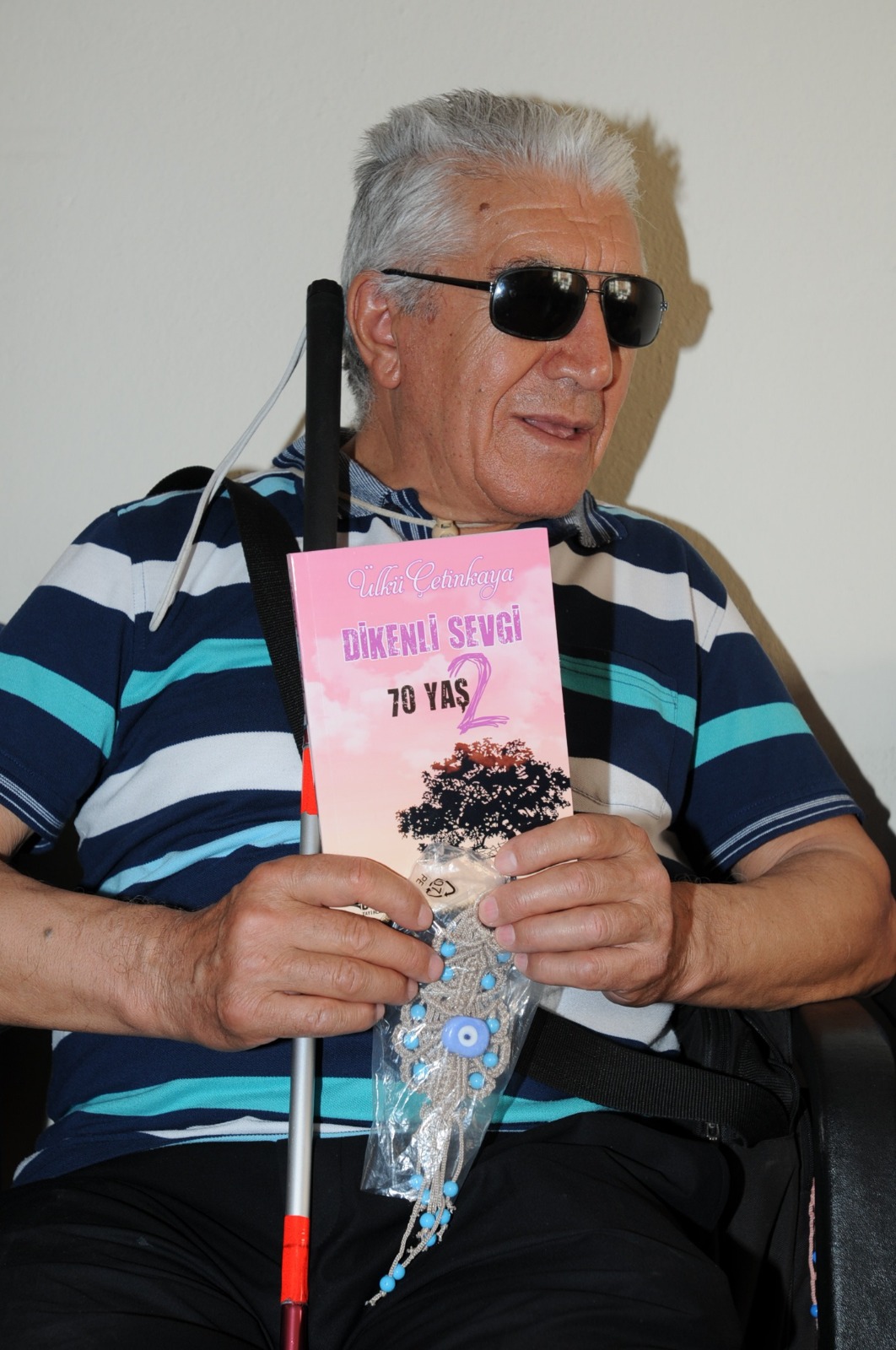 İlk kitabı ‘Dikenli Sevgi 70 Yaş 1’i 20 yılda hazırladığını, ikinci kitabı ‘Dikenli Sevgi 70 Yaş 2’yi de 3 yılda hazırladığını anlatan görme engelli yazar Çetinkaya, “İki yaşında menenjit hastalığı geçirdim. 40 yaşına kadar işlerimi kendim görüyordum. Bu sırada farklı işlerde de çalışarak emekli oldum. İlkokul mezunuyum. 60 yaşından sonra görme engelliler okulunda 6 ay Braille kabartma yazı eğitimi aldım. Gözlerim görmese de evimde hamak örüyorum, makrume örgülerinden araba süsü, duvar süsü, çanta, peçetelik hazırlıyorum. Bu çalışmaları yaparken de 300’e yakın ünlü şiirlerin CD’lerini dinliyorum. Oradan esinlendiğim şiirlerimi Braille alfabesiyle not alıyorum. Bilgisayar kursunu da tamamladım ama, şiirlerimi kızım Müberra ve torunum Merve’nin yardımıyla bilgisayarda topluyorum. Bor Yayınlarıyla çalışıyorum. 80- 100 şiir olduğunda yazdığım şiirleri matbaaya gönderiyorum. Basılan kitaplar kitapçılarda satışa sunuluyor. İlk kitabım 2 bin adet, ikinci kitabım ise bin adet basıldı.” dedi.