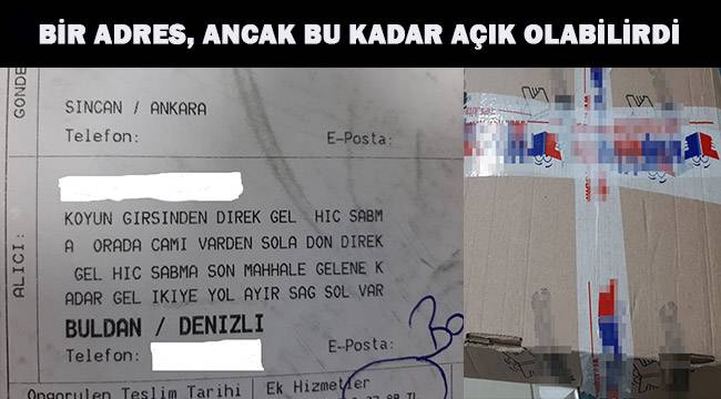 Buldan ilçesinde meydana gelen olayda, adeta ‘bir adres bu kadar’ açık olabilirdi dedirtti. Buldan PTT’ye gelen kargo paketindeki adres görevlileri önce şaşırttı sonra güldürdü.