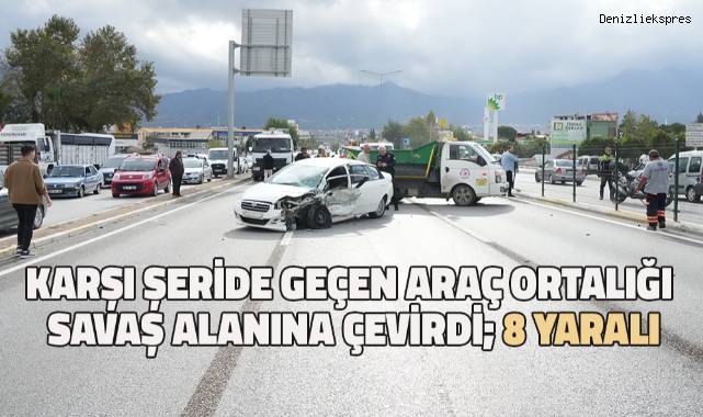 Denizli’nin Pamukkale ilçesinde, karşı şeride geçen aracın seyir halindeki 3 otomobile çarpması sonucu meydana gelen kazada 8 kişi yaralandı.