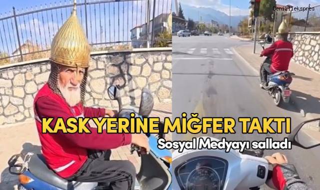 Kask yerine miğfer takan dede görenleri şaşırttı