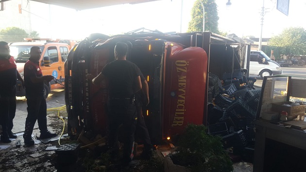 Kamyonun devrilmesi ile birlikte yüklü olan kayısı kasaları yola saçıldı. O esnada durakta bulunan G.K. ile kamyon sürücü B.G. ve otomobil sürücü R.Ç. yaralandı. Devrilen kamyonda sıkışan sürücü B.G. ise Aydın Büyükşehir Belediyesi İtfaiye Daire Başkanlığı ekiplerince sıkıştığı yerden yaralı olarak kurtarıldı. Kazayı gören vatandaşlar durumu 112 Acil Çağrı Merkezi’ne bildirdi. İhbar üzerine bölgeye polis, sağlık ve itfaiye ekipleri sevk edildi. Kısa sürede bölgeye gelen sağlık ekipleri yaralılara ilk müdahaleyi yaparak ambulansla hastanelere kaldırdı.