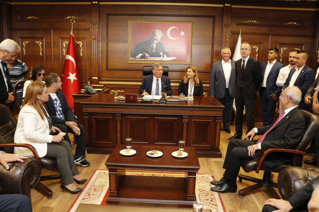 CHP Genel Başkanı Kemal Kılıçdaroğlu Denizli programının devamında Honaz Belediye Başkanı Yüksel Kepenek’i makamında ziyaret ederek bilgi aldı.