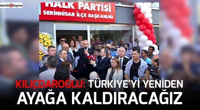 “TÜRKİYE'Yİ YENİDEN AYAĞA KALDIRACAĞIZ”Ziyaretin ardından Kılıçdaroğlu, partisinin Serinhisar İlçe Başkanlığı'nın açılış töreninde konuştu. Türkiye'nin kritik süreçte olduğunu savunan CHP lideri Kılıçdaroğlu, "Türkiye iyi yönetilmiyor. İşçi memnun değil, çiftçi, esnaf ve sanayici memnun değil. Her hanede huzursuzluk var. Türkiye içeride ve dışarıda savruluyor. İç ve dış politika ile ekonomide ciddi sorunlarımız var. Bütün bu sorunları karşılayamayan bir siyasal iktidar var. İktidar zorunlu olarak erken seçime gidebilir. 'Ben yönetemiyorum artık, erken seçime gidiyorum' diyebilir. Yerel seçimlerde önemli bir başarı sağladık. Demokrasiyi bu ülkeye getirmek için gerekli çalışmayı yaptık. Her kesimden ve her partiden belediye başkanlarımız oy aldılar. Şimdi biz yeni bir hareketi, Kuva-yi Milliye ruhuyla her görüşten insanın destek vereceği yeni anlayışı seslendirmek istiyoruz. Her partiden insanlarımız gelsinler, CHP'ye oy versinler. Biz Türkiye'yi yeniden ayağa kaldıralım.” CHP Genel Başkanı Kılıçdaroğlu, daha sonra beraberindekilerle ilçe başkanlığının yeni binasının açılış kurdelesini kesti. Kılıçdaroğlu, Honaz ve Bozkurt ziyaretleriyle Denizli programını tamamlayacak.