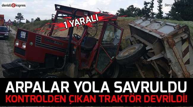Denizli'nin Çameli ilçesinde arpa balyası yüklü traktör şarampole devrildi. Traktörün römorkunda bulunan arpa balyalarının şarampole savrulurken, sürücü yaralandı.