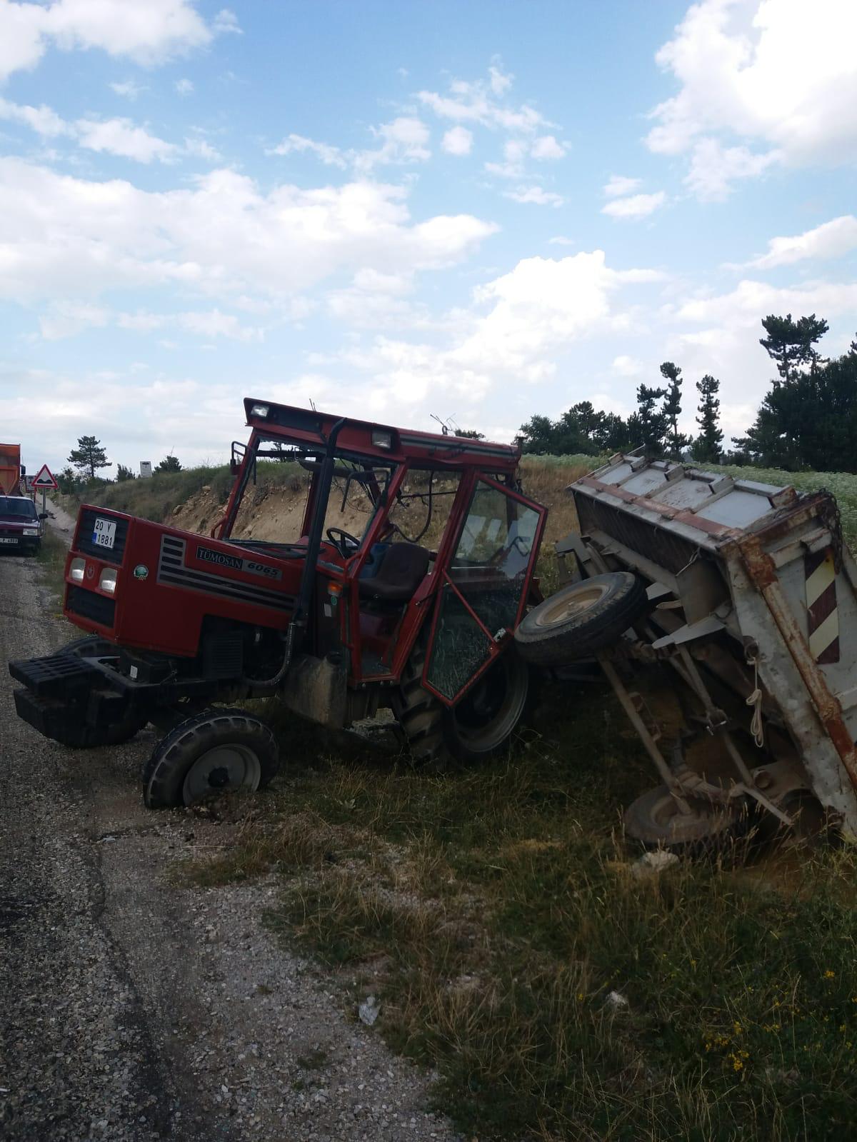Kaza, bugün saat 16.30 sularında Çameli İlçesinin İmamlar Mahallesinde meydana geldi. 24 yaşındaki sürücü Muhittin . 20 Y 1881 plakalı traktör ile tarladan yüklediği arpa balyalarını İmamlar Mahallesine götürmek için hareket etti. Traktör, İmamlar'da rampa aşağı iniş sırasında kontrolden çıkarak devrildi. Bu esnada römorkta bulunan arpa balyaları şarampole savruldu. Traktörde ve römorkte maddi hasar meydana geldi. Sürücü Muhittin'in yaralı olarak Acıpayam Devlet Hastanesinde tedavi altına alındı.Jandarma olayla ilgili soruşturma başlattı.