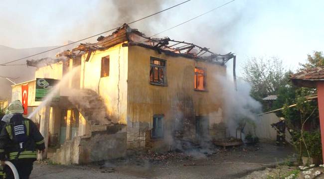Pamukkale İlçesi Korucuk Mahallesinde iki katlı bir bina çıkan yangında kullanılamaz hale geldi.
