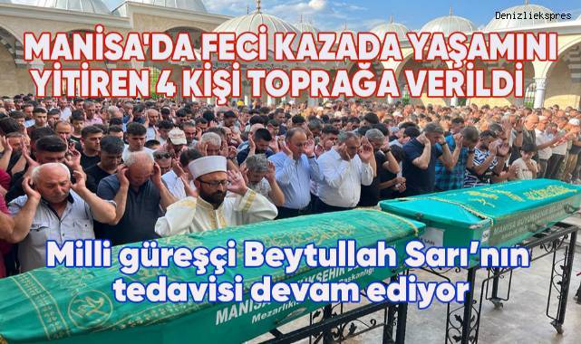 Manisa’nın Salihli ilçesinde meydana gelen kazada yaşamını yitiren 4 kişi, memleketleri Kula ilçesinde kılınan cenaze namazlarının ardından son yolculuğuna uğurlandı. Aynı kazada ağır yaralanan milli güreşçi Beytullah Sarı’nın ise Manisa Şehir Hastanesi’ndeki tedavisinin sürdüğü öğrenildi.