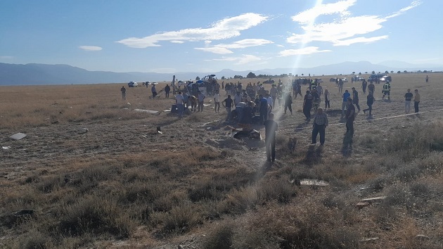 Bölgede tuz üretimi yapılan Acıgöl sınırlarında faaliyet gösteren özel bir şirkete ait tuz depolama sahasına düşen helikopter için bölgedeki tüm ekipler seferber edildi.
