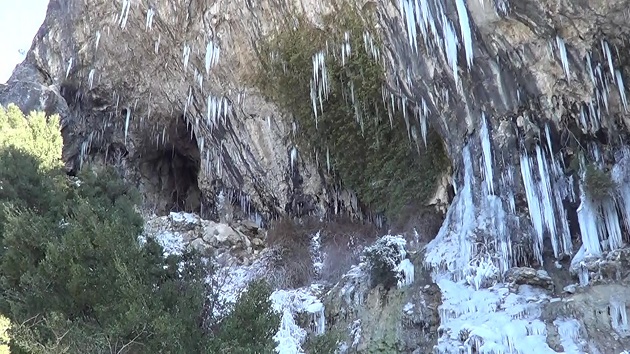 Denizli’de Mart ayı ortalarına gelinmesine rağmen aşırı soğuk havanın etkileri devam ediyor. Geceleri hava sıcaklığını eksi 8 derecelere düştüğü Denizli’de, 1400 rakımdaki Zeytin Yaylası Şelalesi de soğuktan etkilenerek tamamen dondu. Yaklaşık beş metre yükseklikten aşağıya dökülen şelalenin donması, şelaleden dökülen suların Pamukkale travertenlerini aratmayan muhteşem görüntüsü, kayıt altına alındı. Yaşanan soğuk hava dalgasıyla birlikte donan şelalenin muhteşem güzelliği kart postallık görüntülerin ortaya çıkmasına neden oldu.